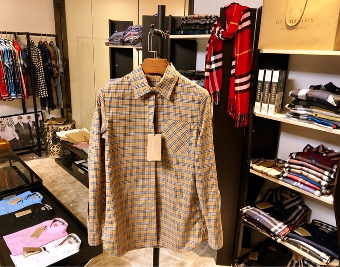バーバリーバーバリーレディースクラシックカジュアルコットンチェックシャツr02069ブラウン