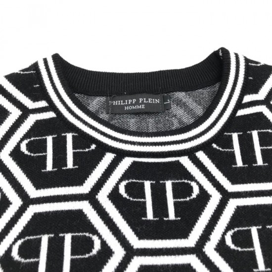 フィリッププレイン-フィリッププレインメンズクルーネックウールセーターi0094ブラック