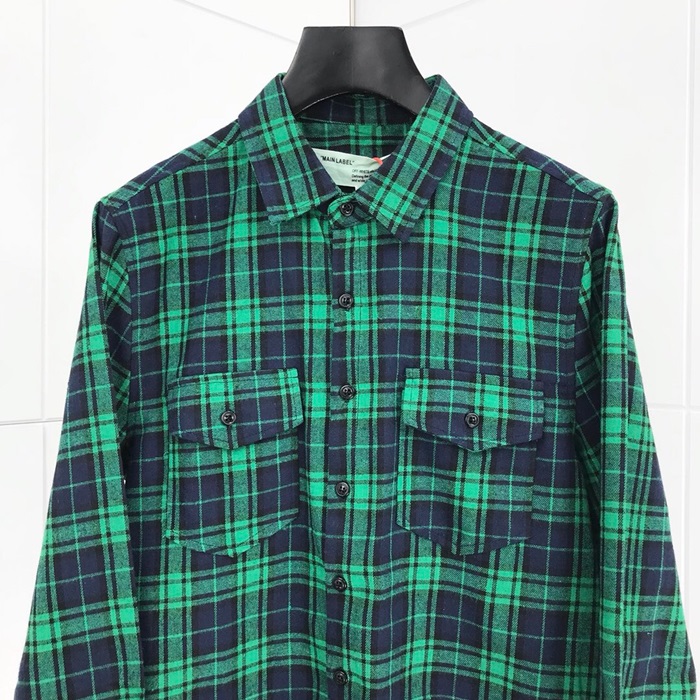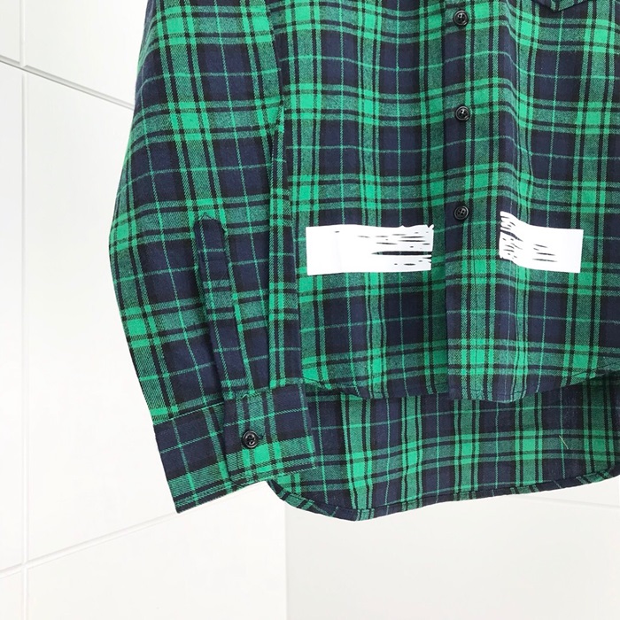 オフホワイトオフホワイトメンズベーシックオーバーサイズウールチェックシャツf0354.グリーン