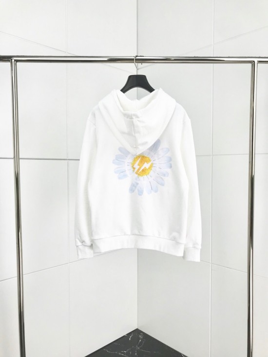 ピースマイナスワンメンズフラワーコットンフーディa004.ホワイト