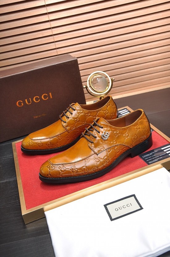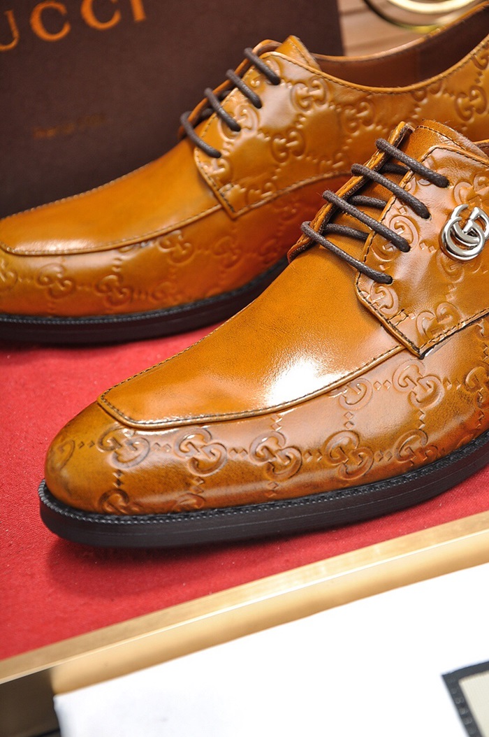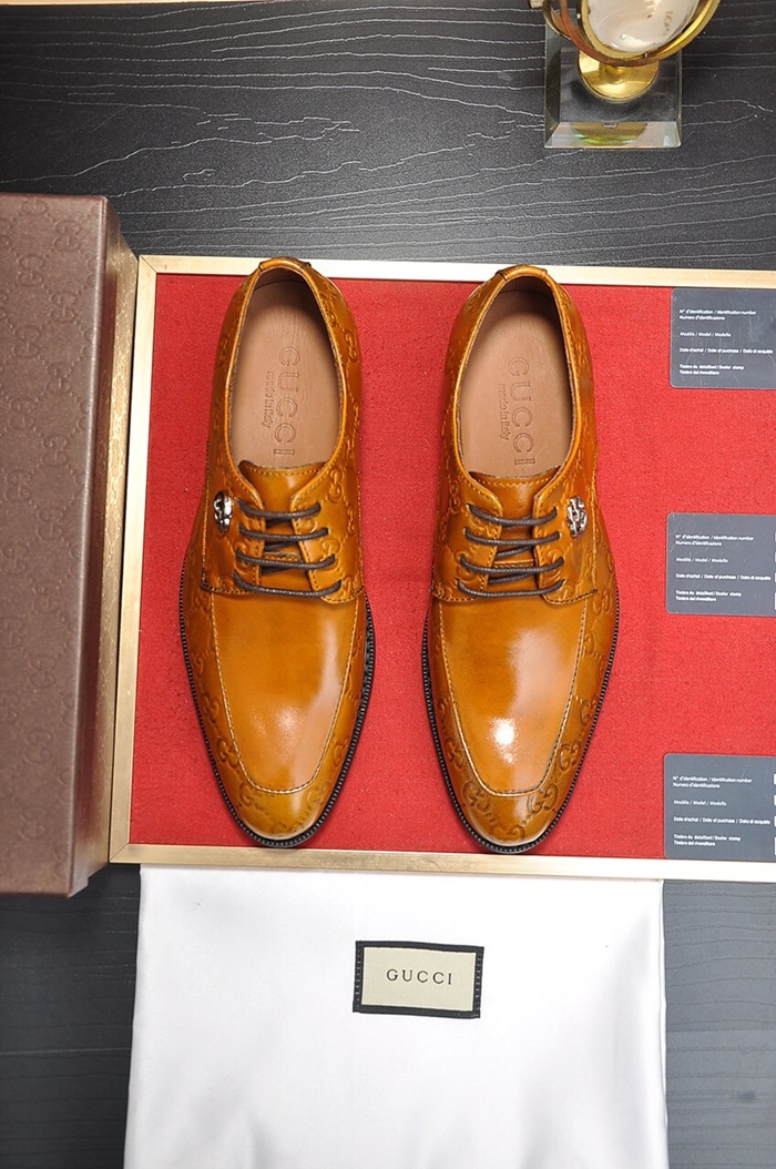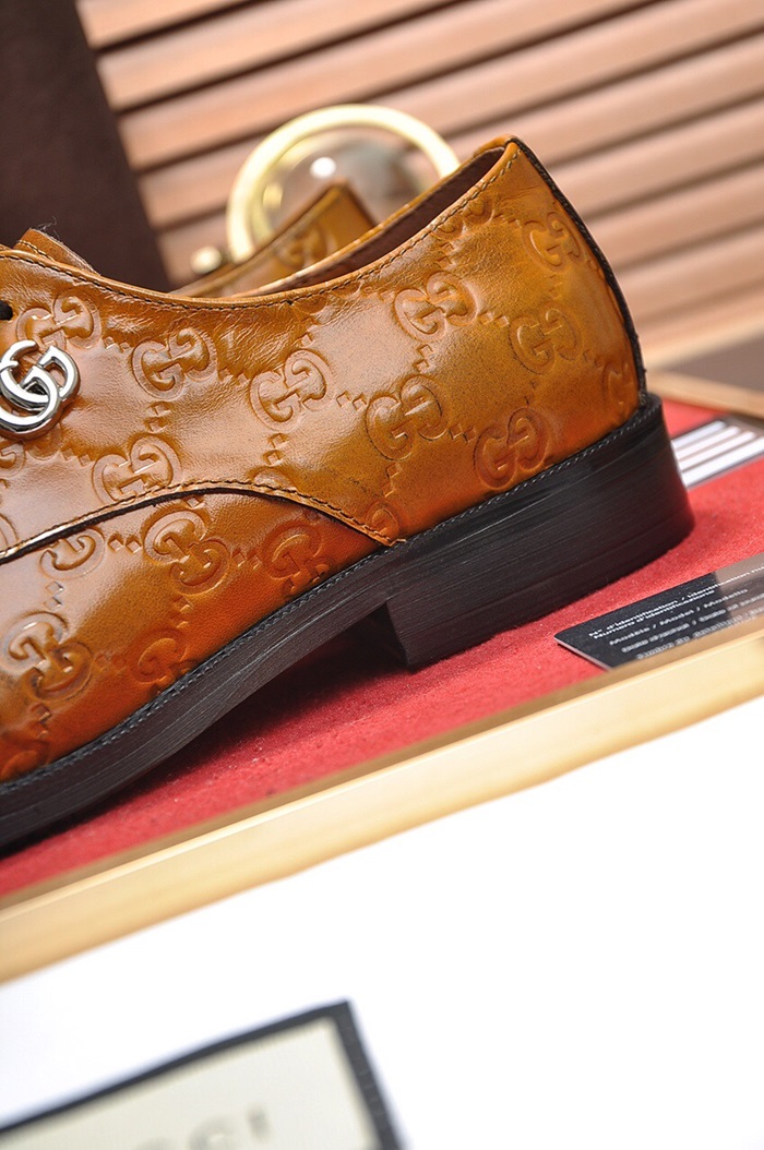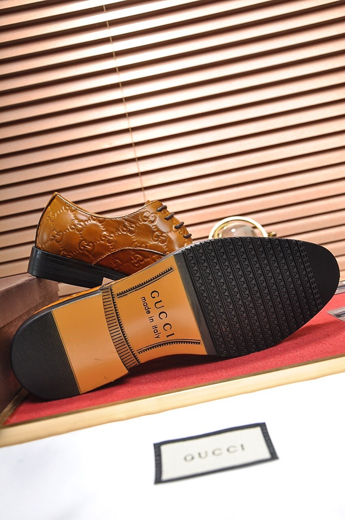 グッチメンズレザーオックスフォードシューズS0665ブラウン