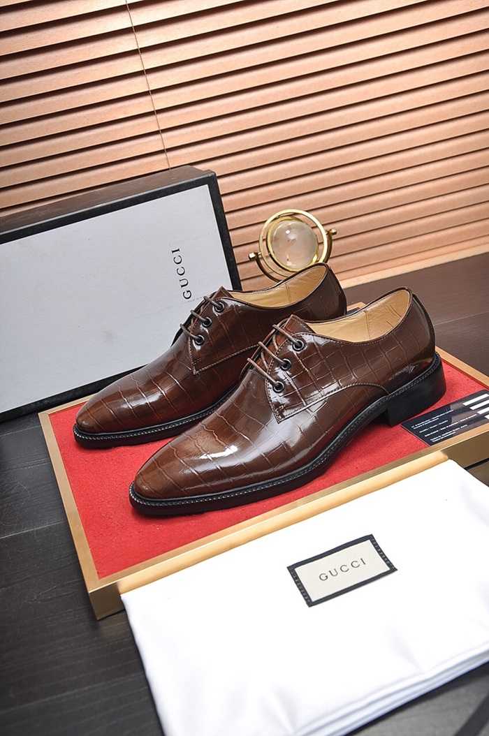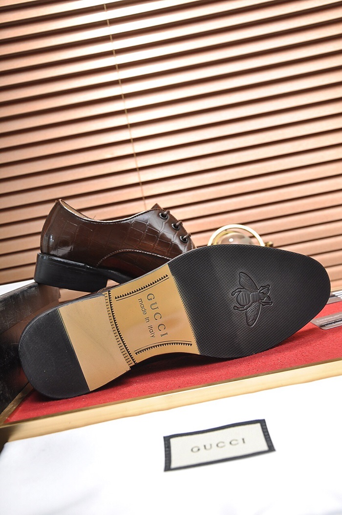 グッチメンズレザーオックスフォードシューズS0669ブラウン