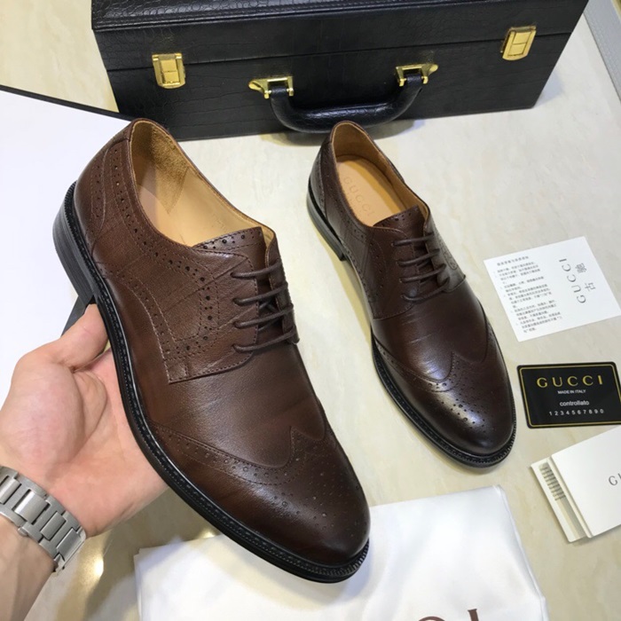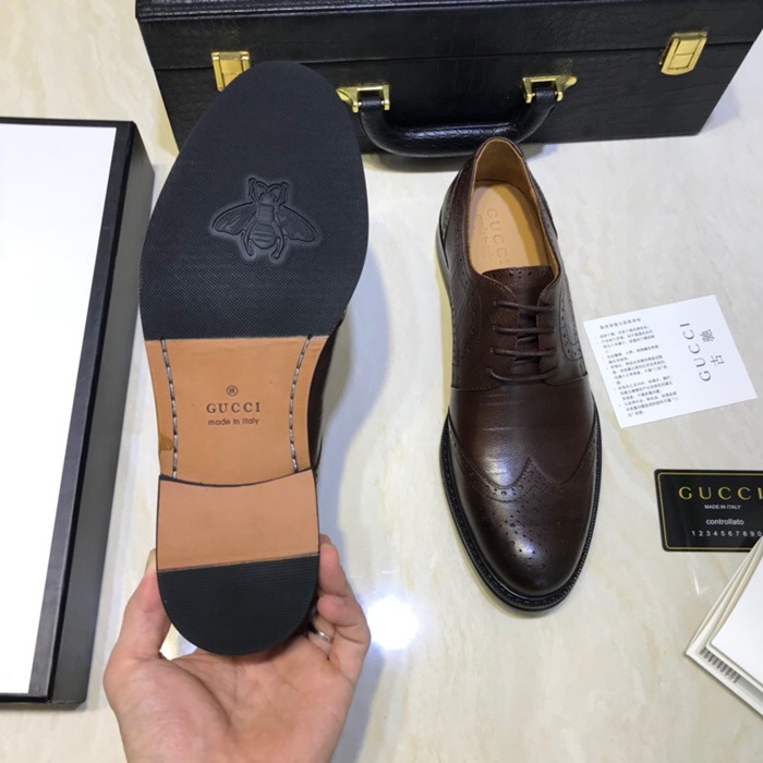 グッチメンズレザーオックスフォードシューズS0745ブラウン