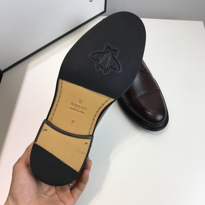 グッチメンズレザーオックスフォードシューズS0747ブラウン