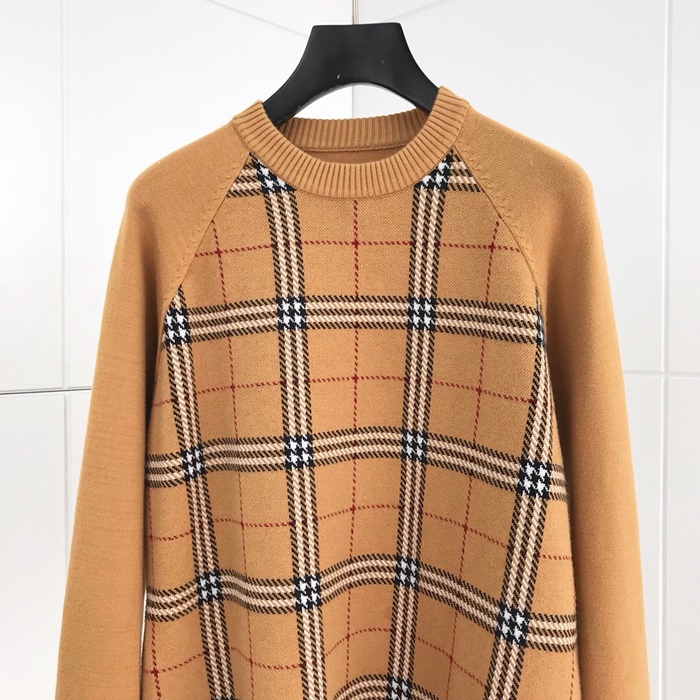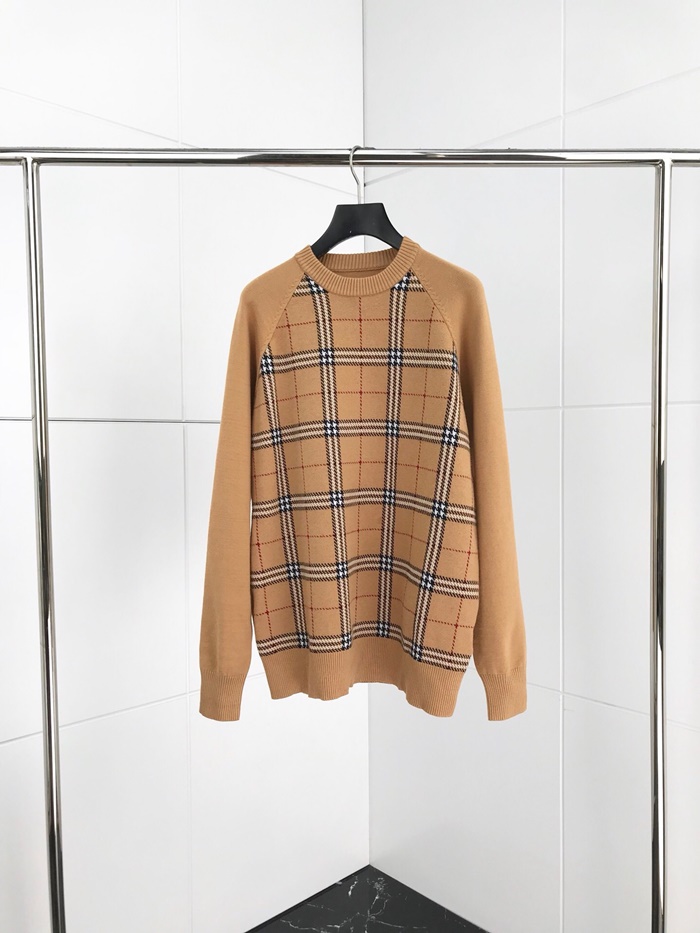 バーバリー-バーバリーメンズヴィンテージクルーネックウールセーターr02093.ブラウン