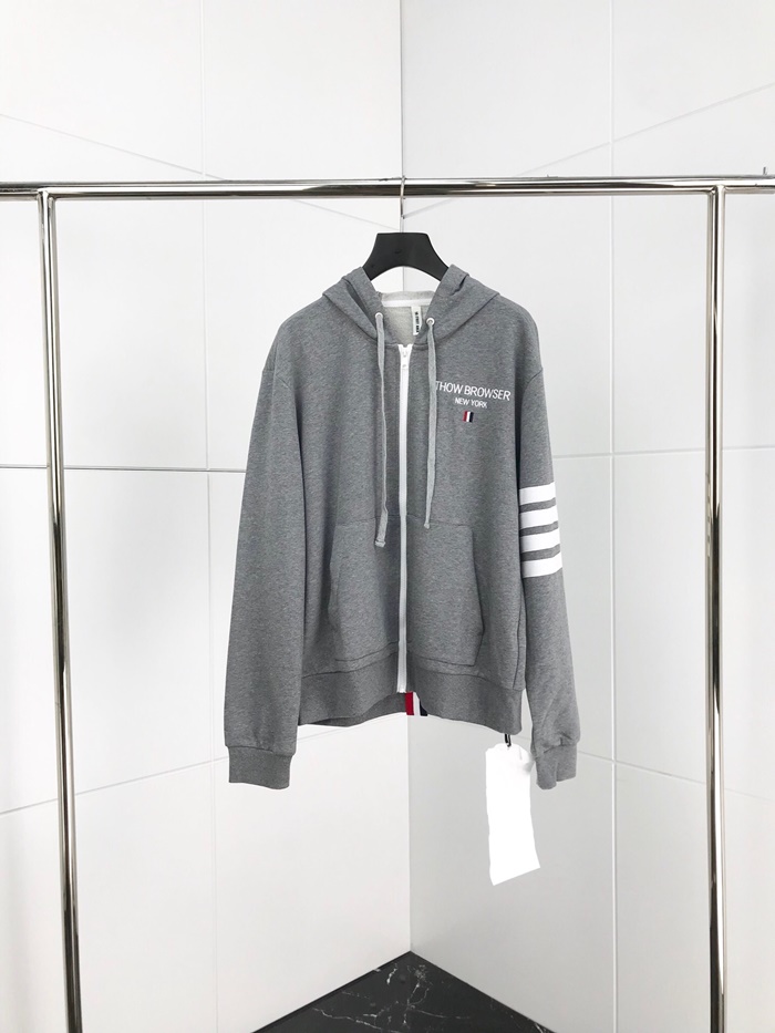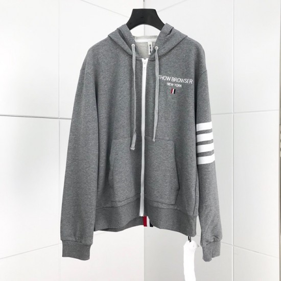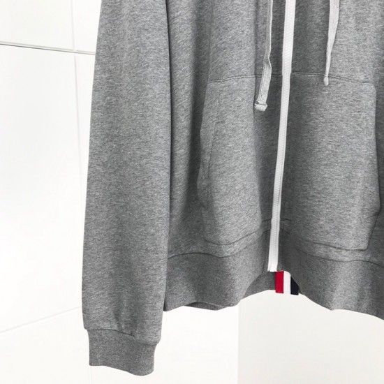トムブラウン-トムブラウンメンズカジュアルジップアップコットンフーディm0502グレー
