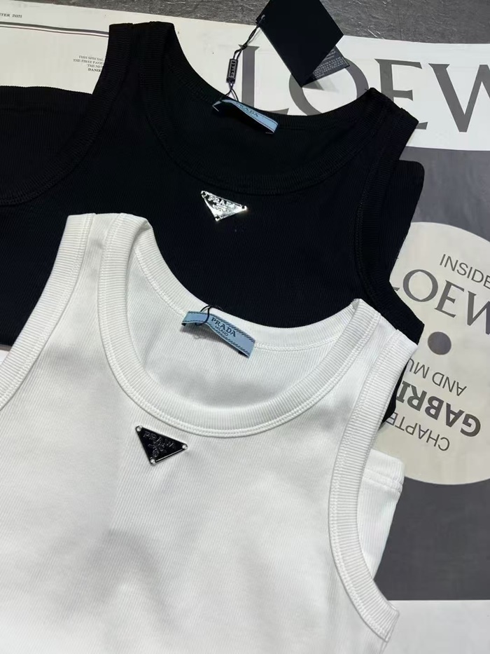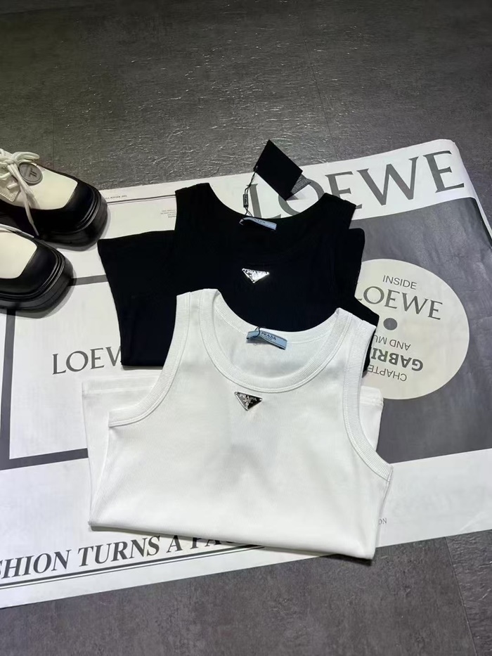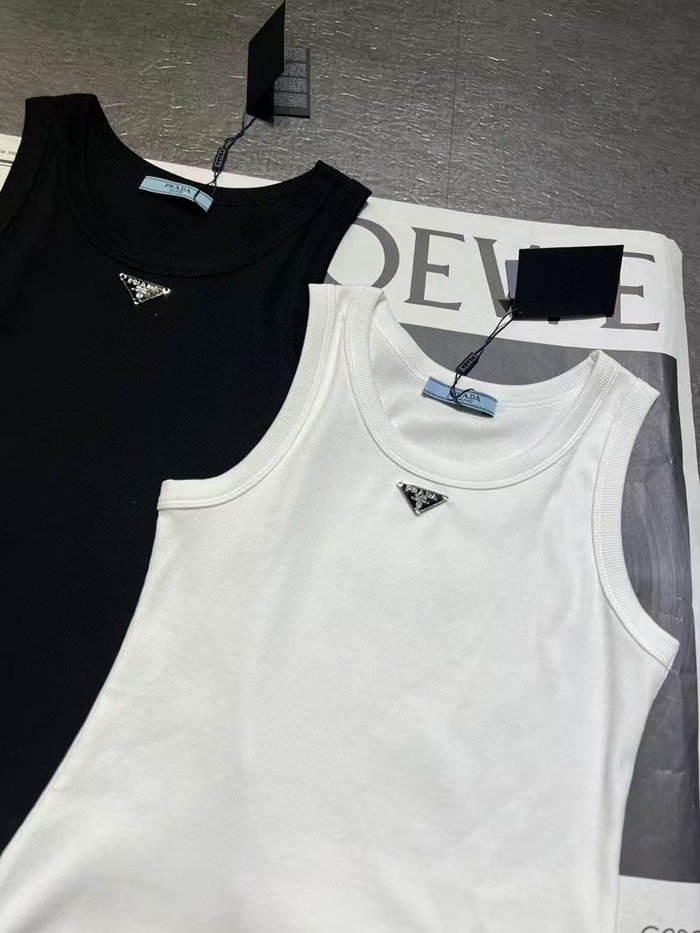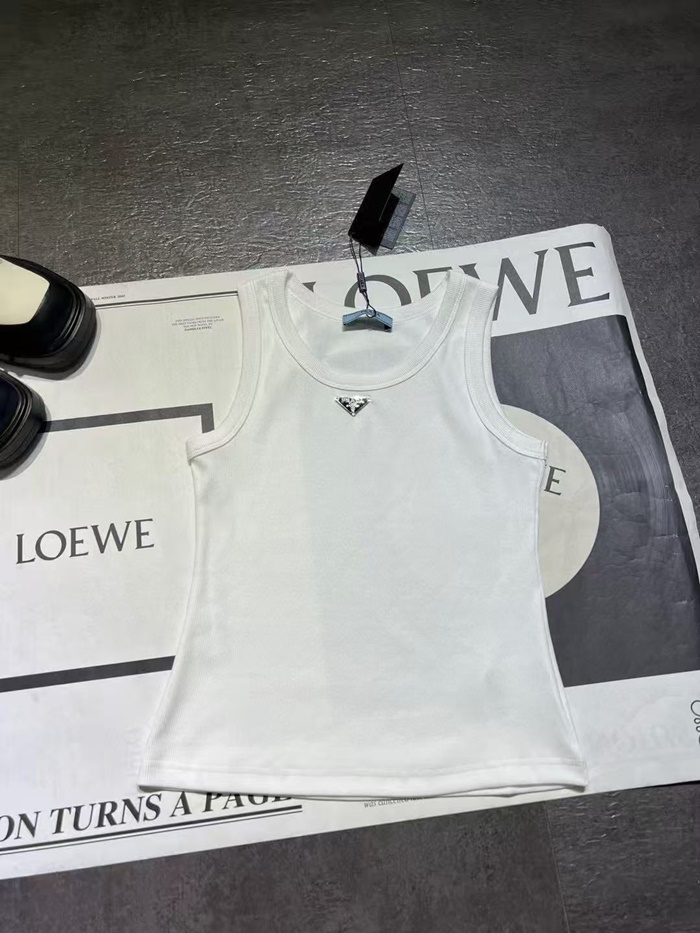 プラダレディースホワイト半袖タンクトップc0090