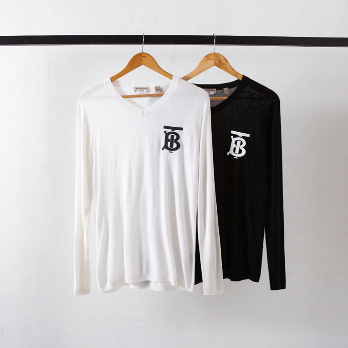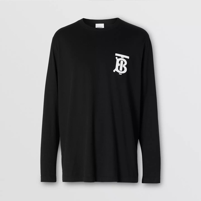 バーバリーバーバリーメンズカジュアルコットン長袖Tシャツr0"ブラック