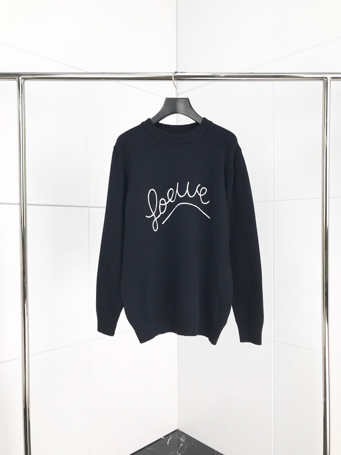 ロエベ-ロエベメンズクルーネックウールセーターe0180.ブラック