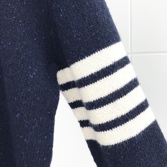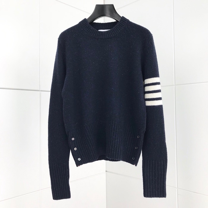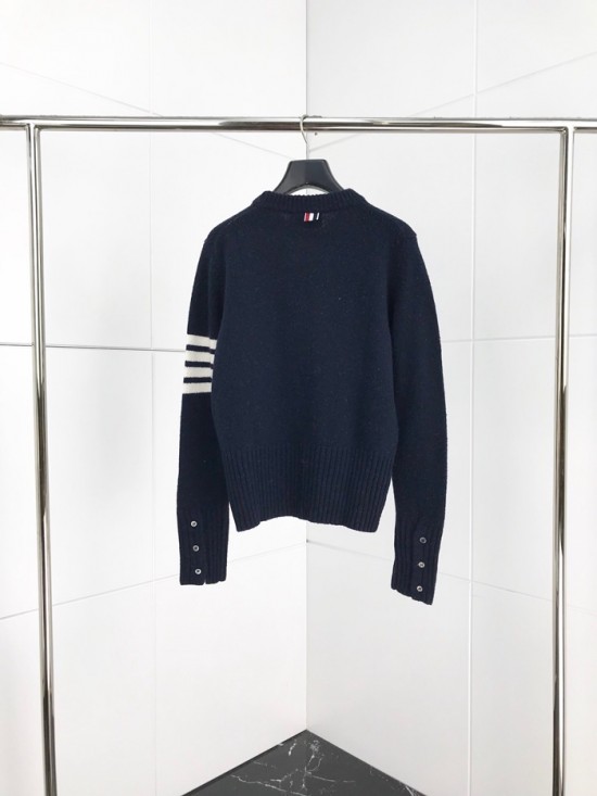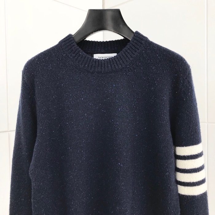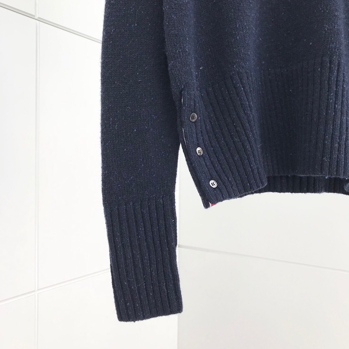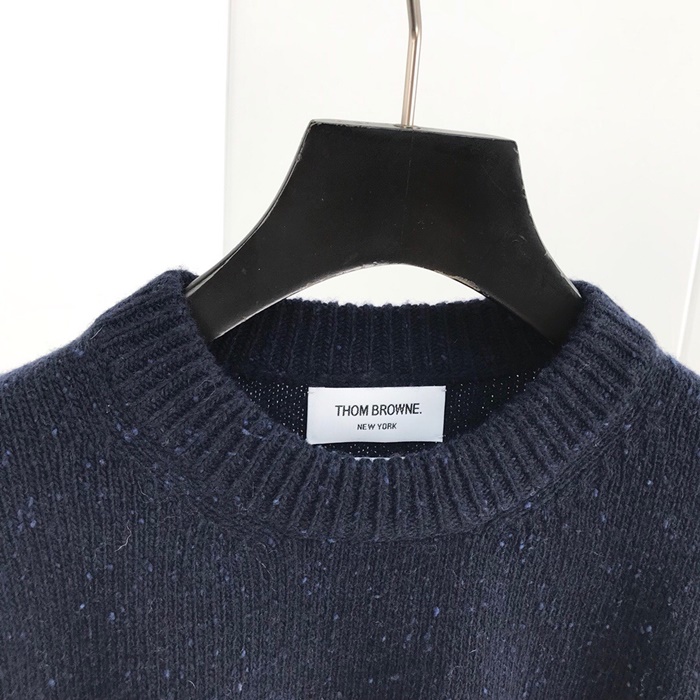 トムブラウン-トムブラウンメンズストラップクルーネックウールセーターm0534ネイビー