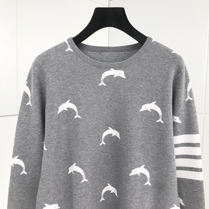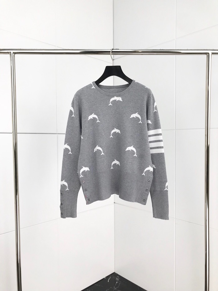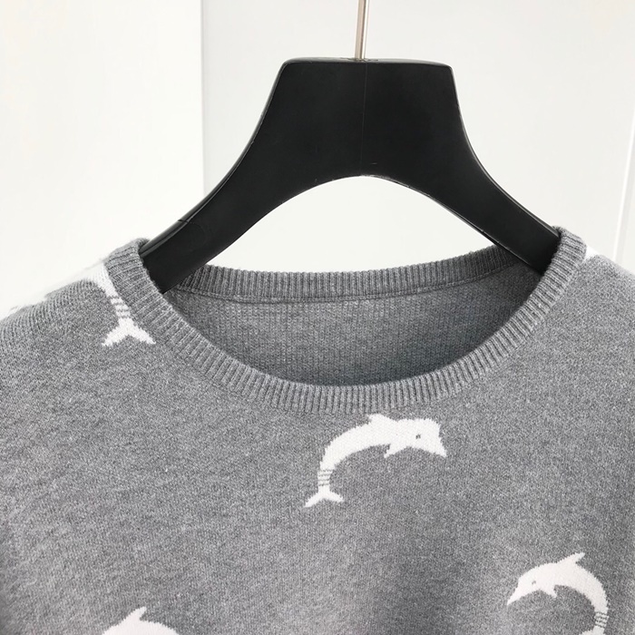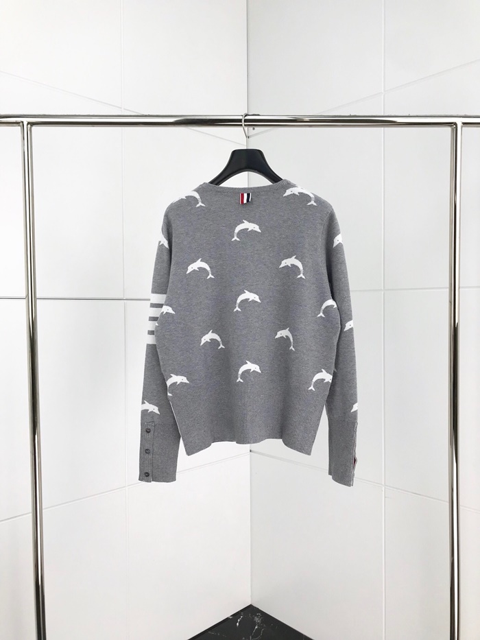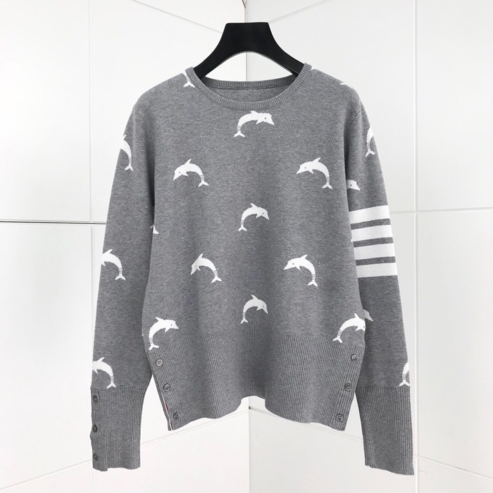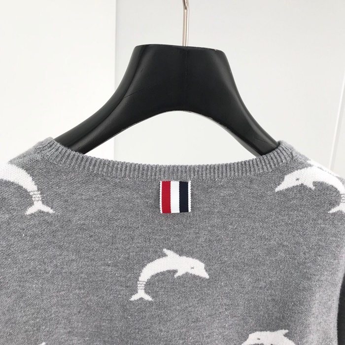 トムブラウン-トムブラウンレディース用ストラップクルーネックウールセーターm0551グレー