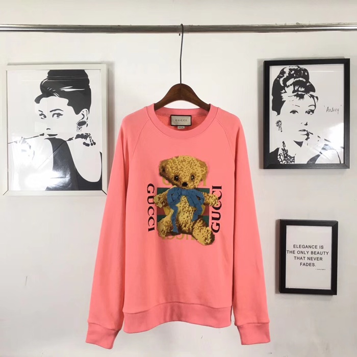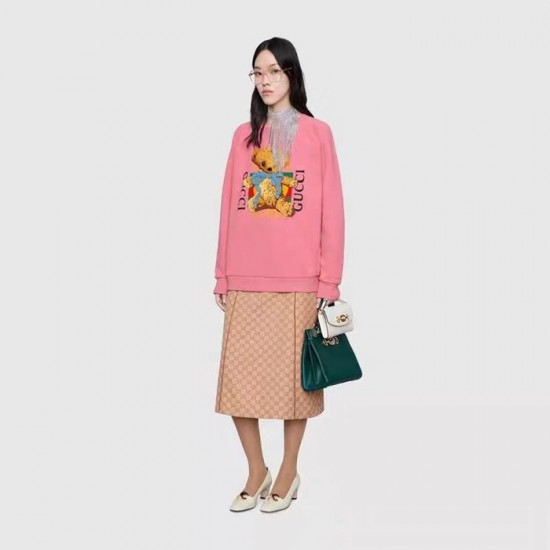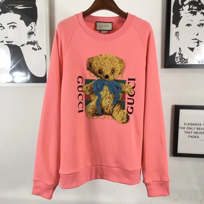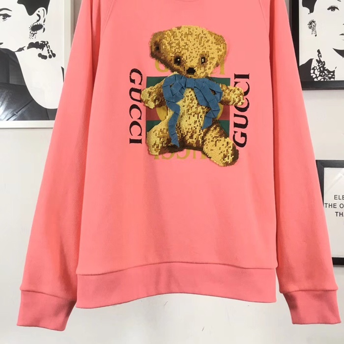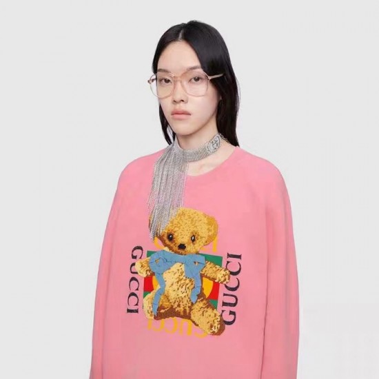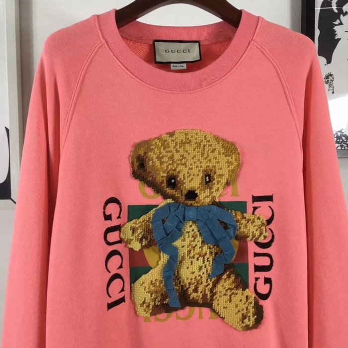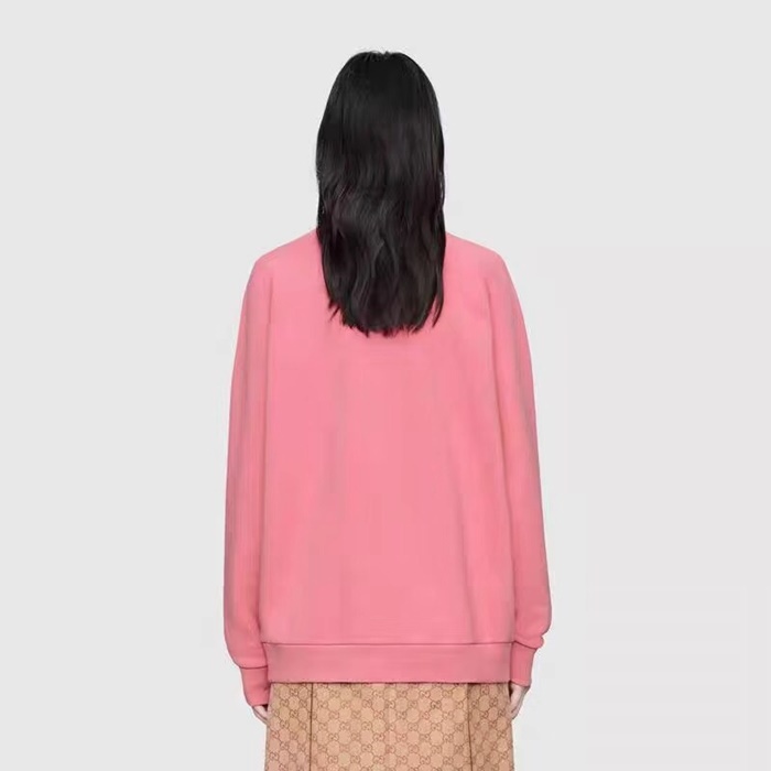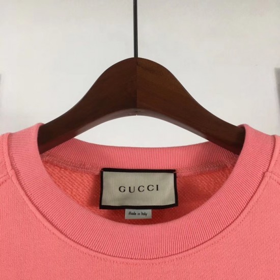 グッチ-グッチメンズコットンクルーネックオーバーサイズ長袖Tシャツc02200ピンク