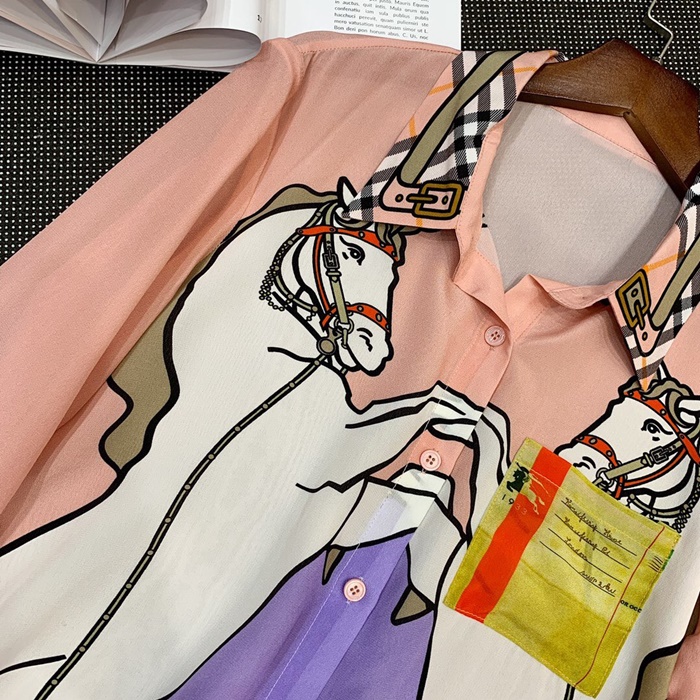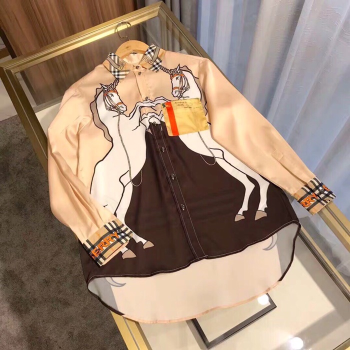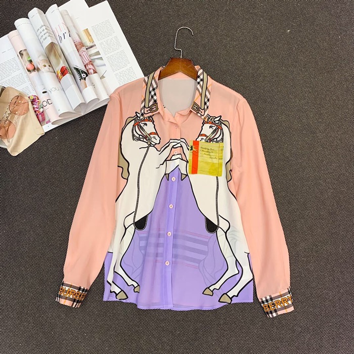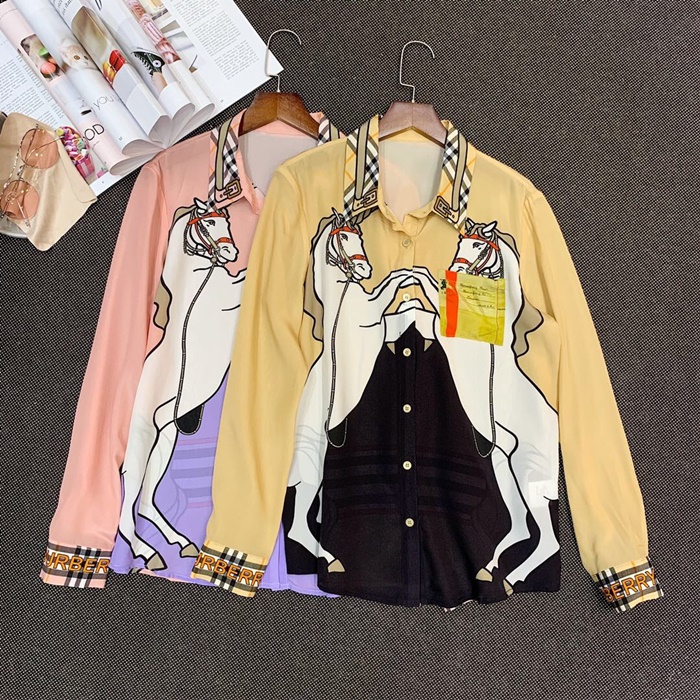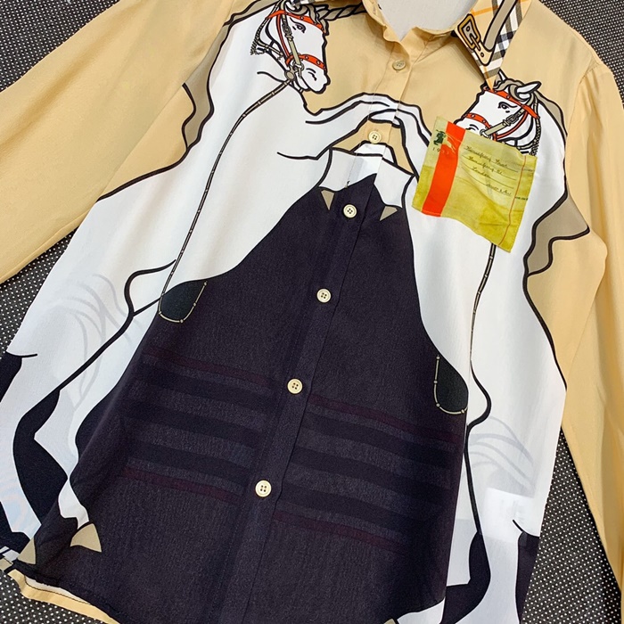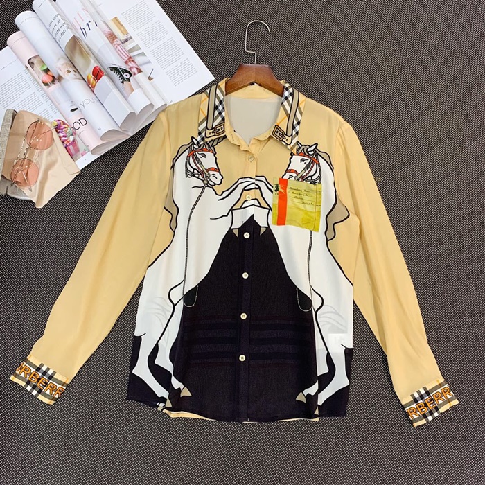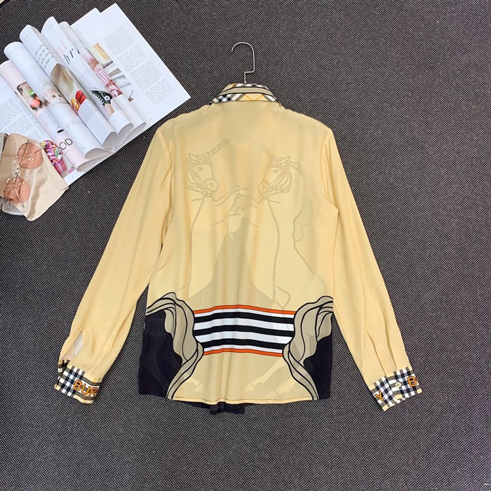 バーバリーバーバリーレディースフラワーシルクシャツr021422(イエロー/ピンク)