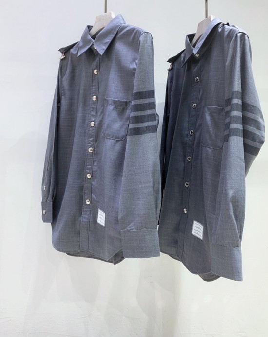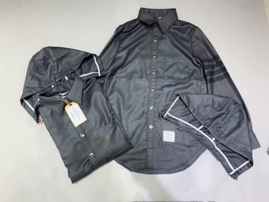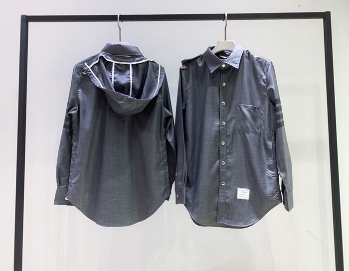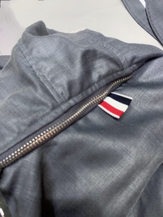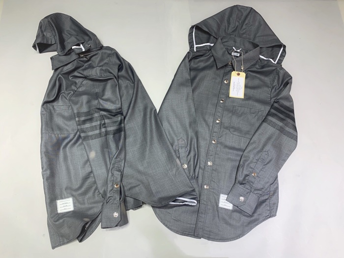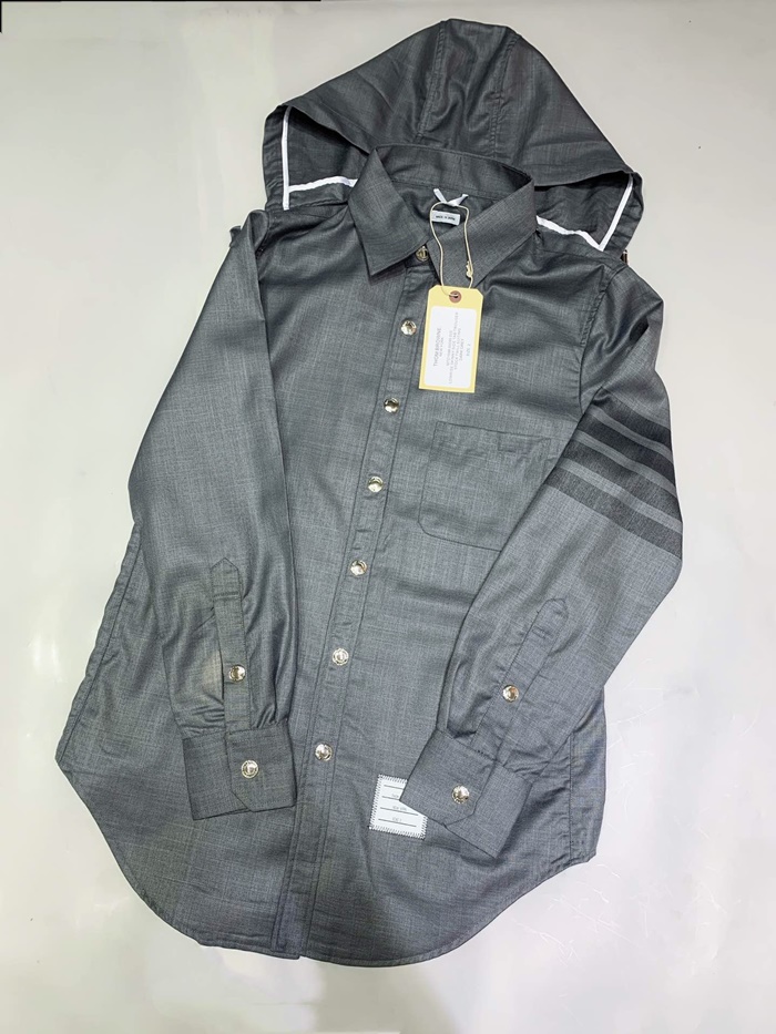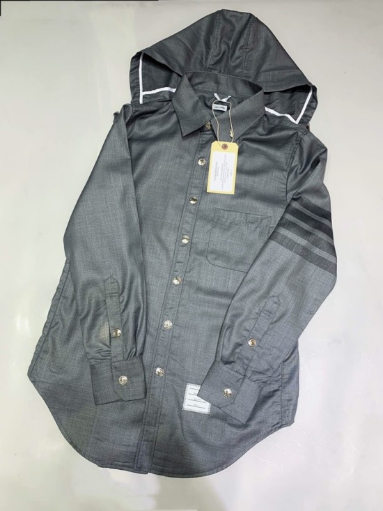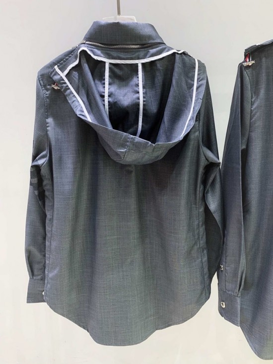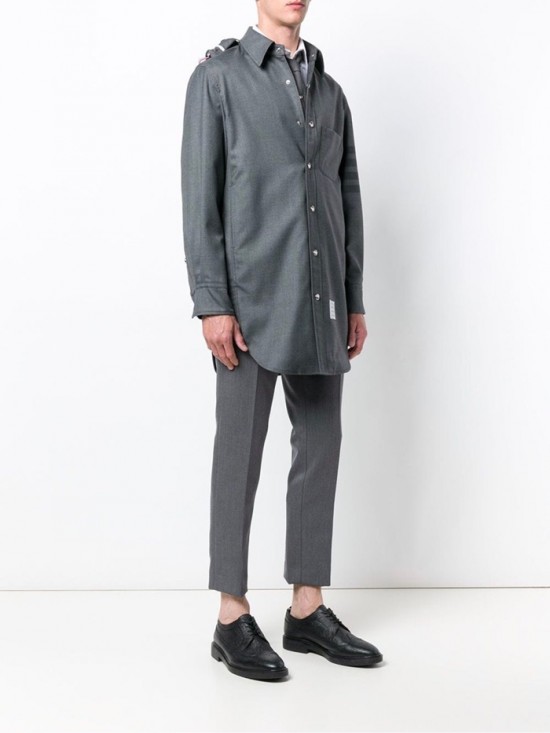トムブラウンメンズストラップコットンフードシャツm0574.グレー