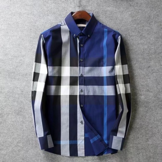 バーバリーバーバリーメンズクラシックカジュアルコットンチェックシャツr02200ブルー