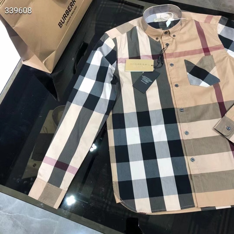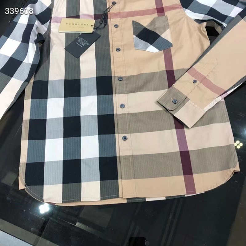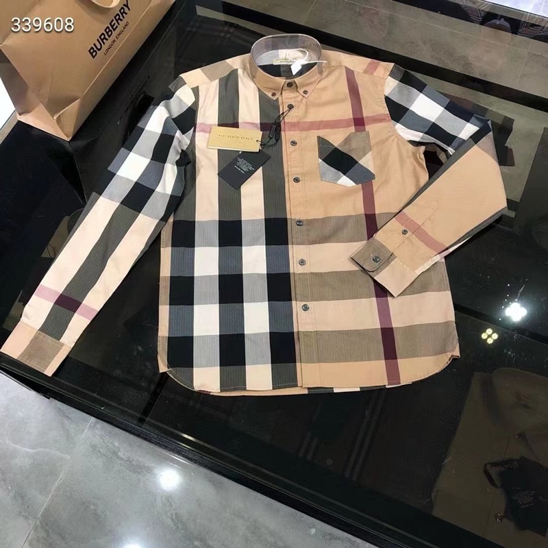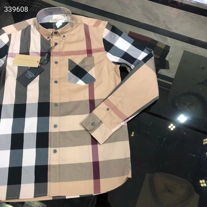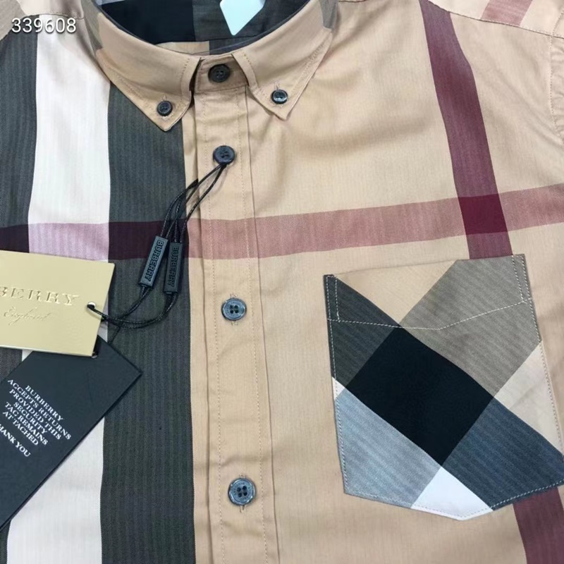 バーバリーバーバリーメンズクラシックカジュアルコットンチェックシャツr02201.キャメル