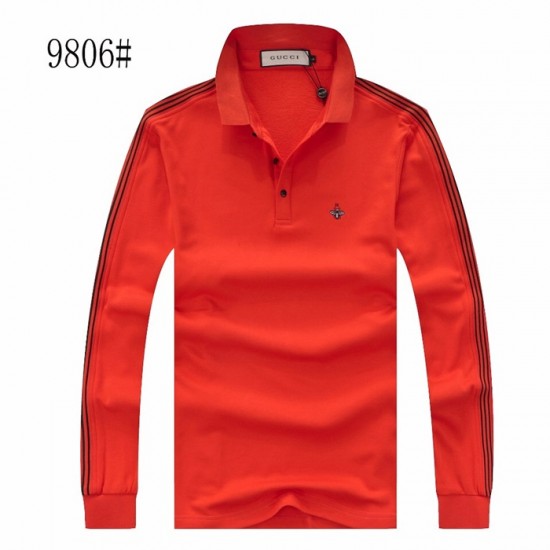 グッチグッチメンズベーシックコットンポロ長袖Tシャツc02228オレンジ
