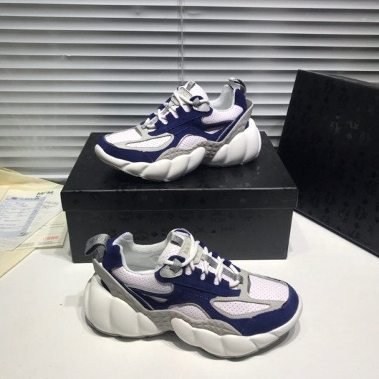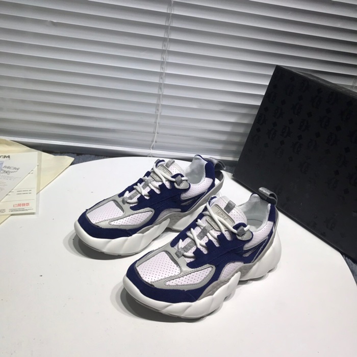 エムシーエムユニセックスレザーランニングシューズ,S0006ブルーホワイト