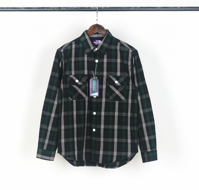 ザノースフェイスメンズコットンシャツr01412(ブラック/グリーン)