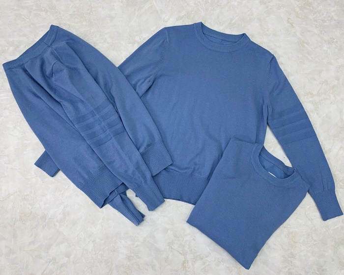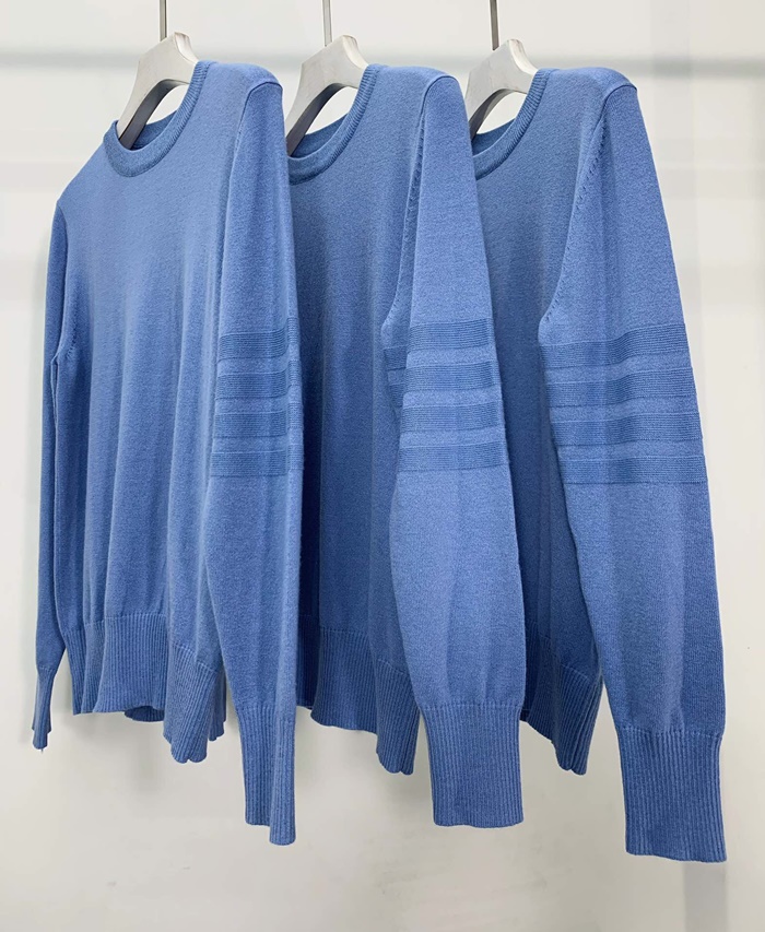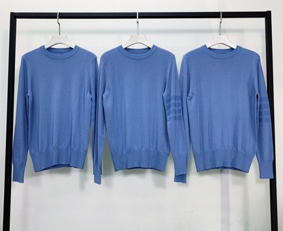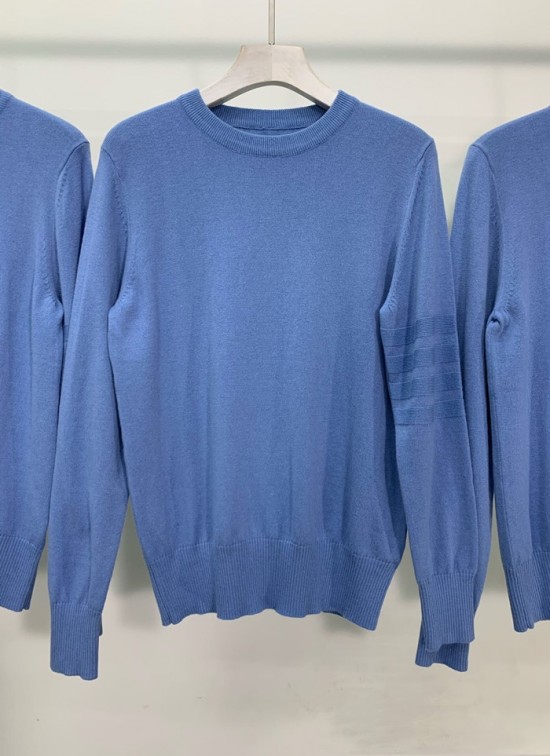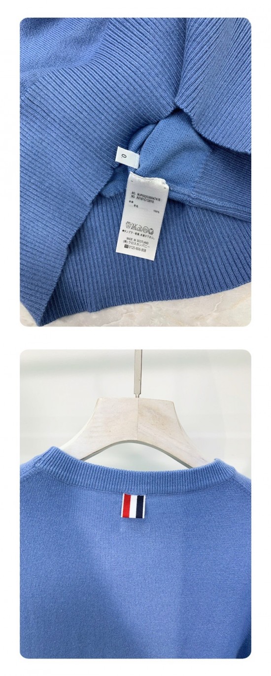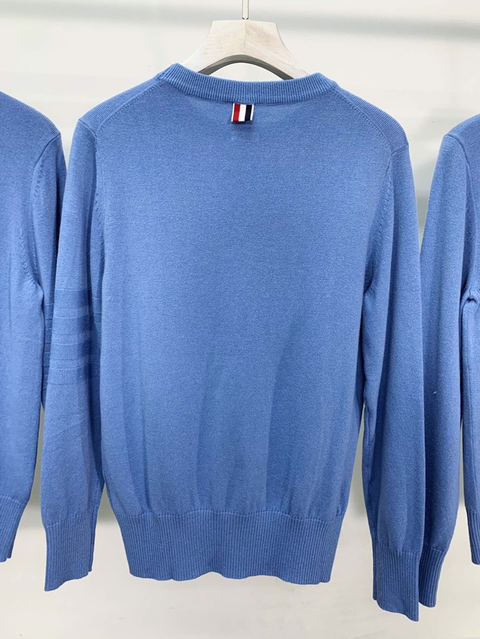 トムブラウン-トムブラウンメンズストラップクルーネックウールセーターm0648.ブルー