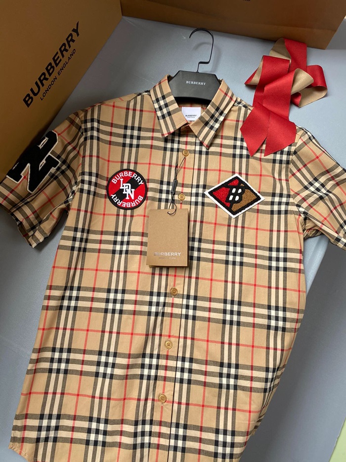 バーバリーバーバリーメンズヴィンテージチェックシャツr02412.ブラウン