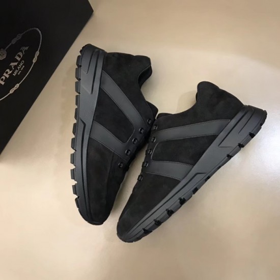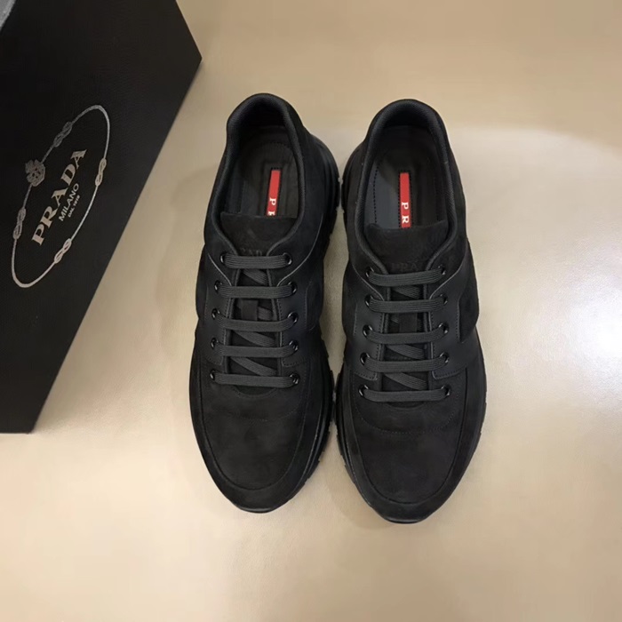 プラダメンズレザーランニングシューズ,S0355ブラック