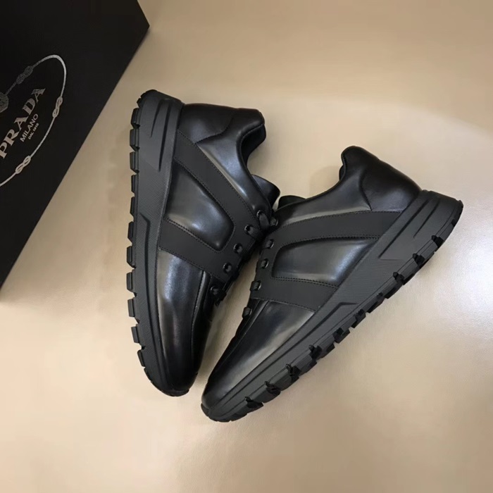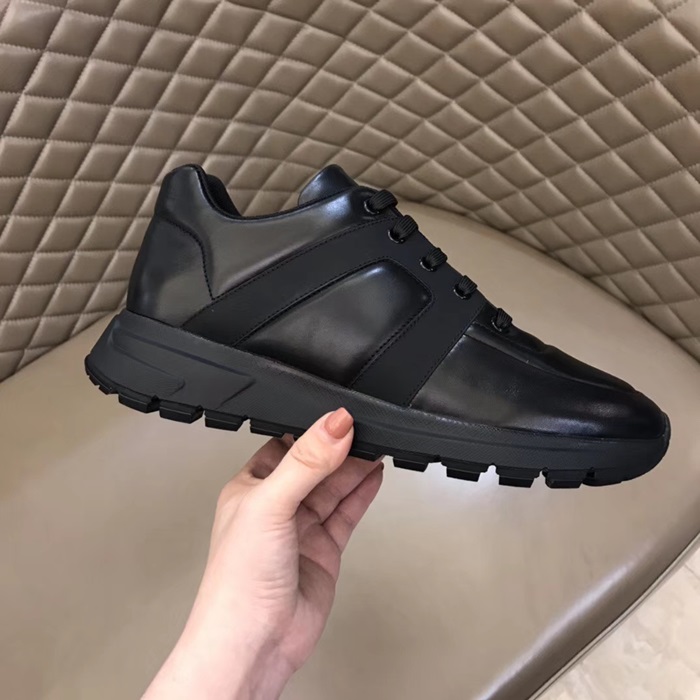 プラダメンズレザーランニングシューズ,S0356ブラック