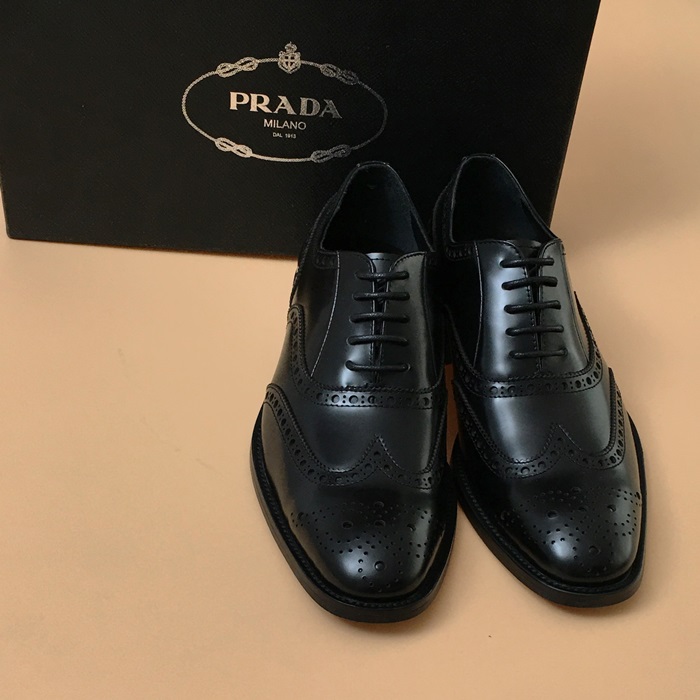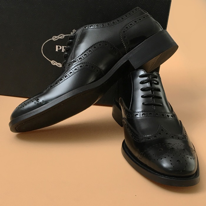 プラダメンズレザーオックスフォードシューズ,S0364ブラック