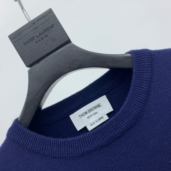 トムブラウン-トムブラウンメンズストラップクルーネックセーターm0700.ネイビー
