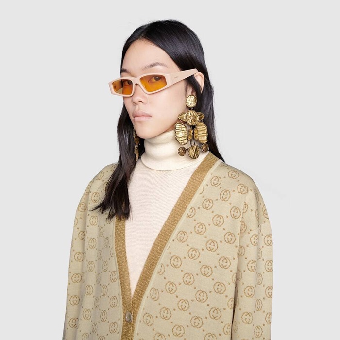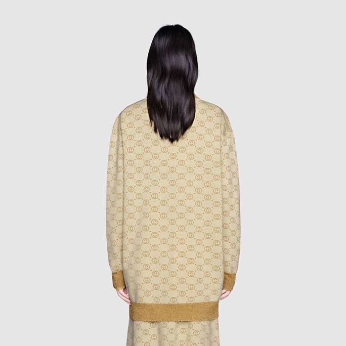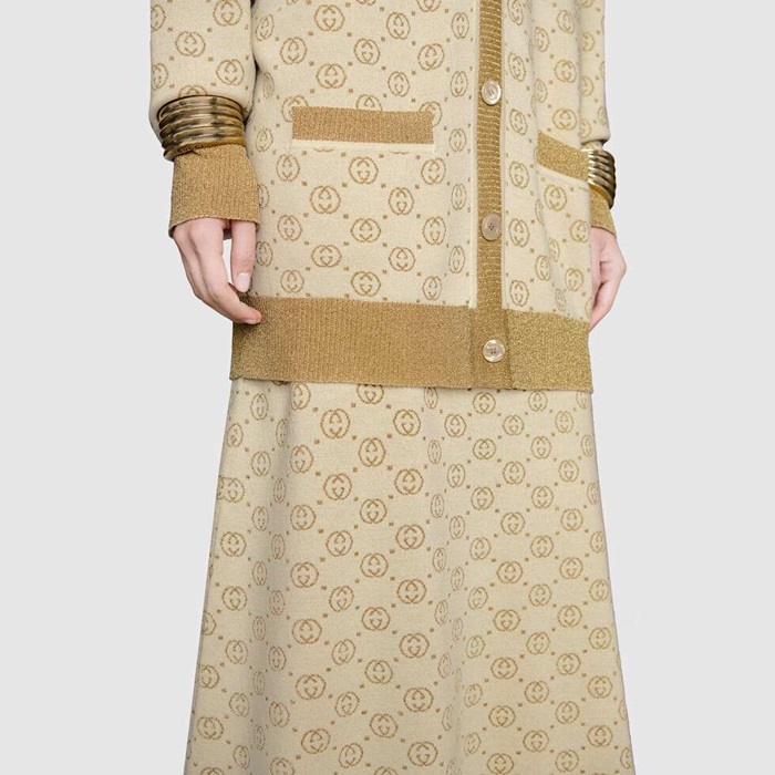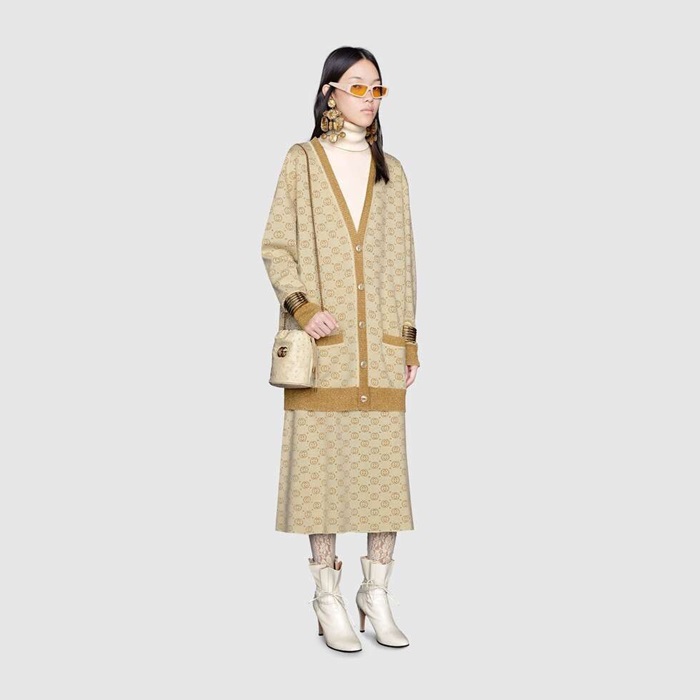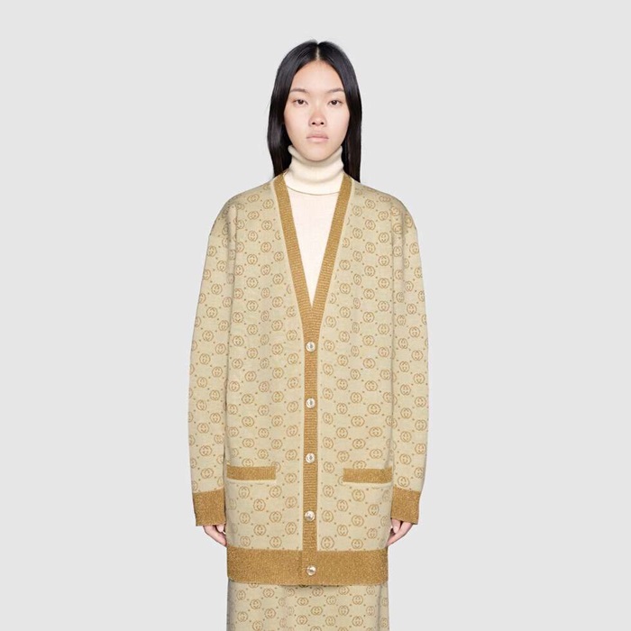 グッチレディーストレンディネックウールカーディガンc02677ゴールド