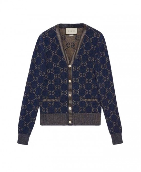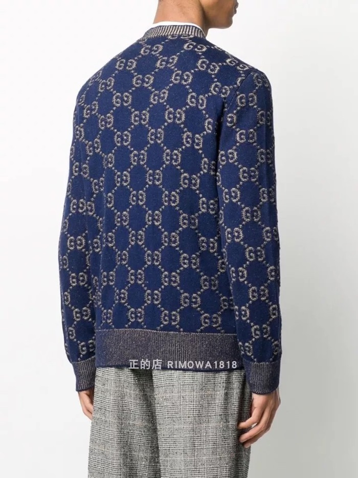 グッチメンズトレンディネックウールカーディガンc02685ネイビー