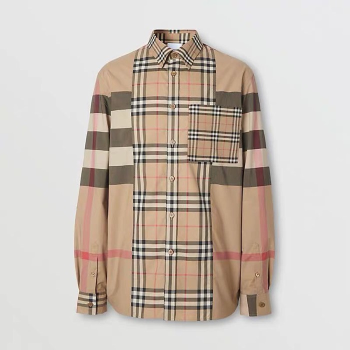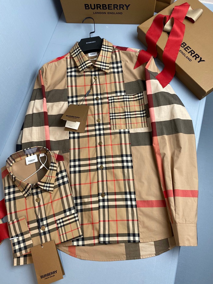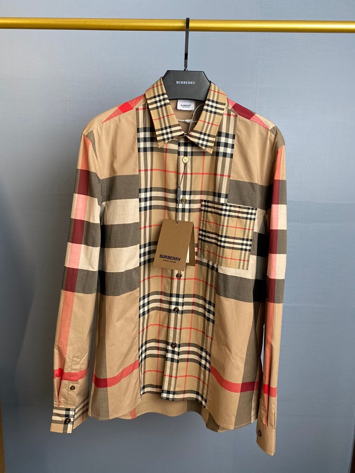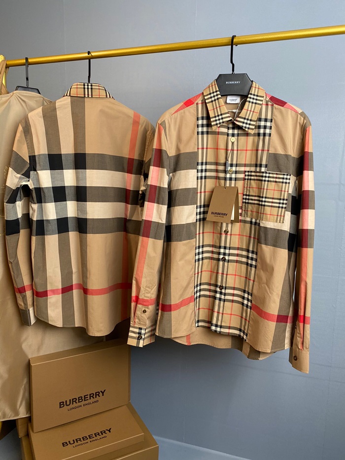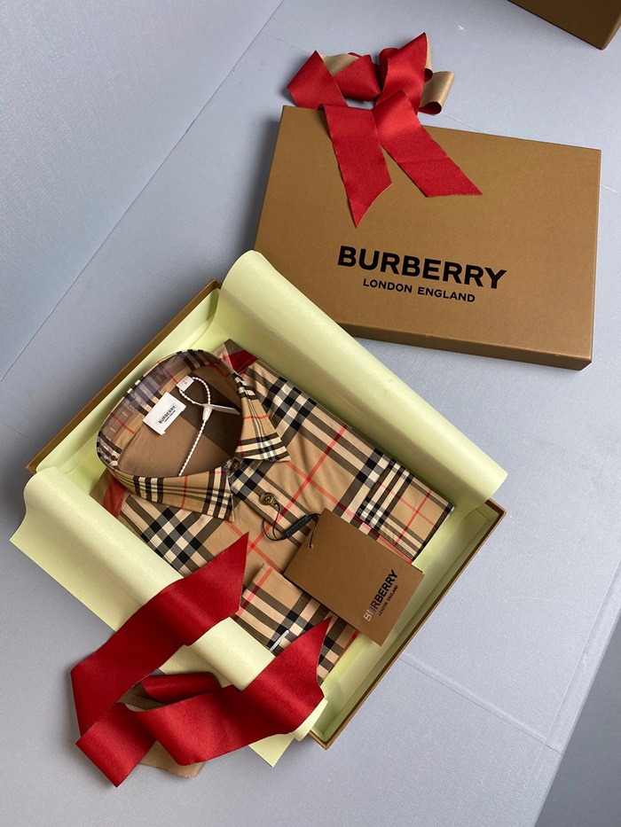 バーバリーバーバリーメンズヴィンテージベーシックコットンシャツr02725.ブラウン