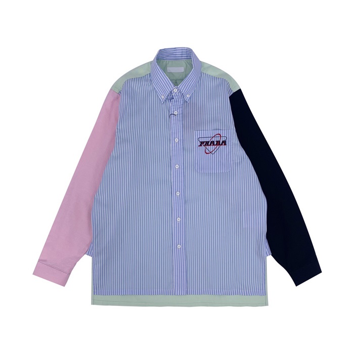 プラダメンズカジュアルコットンシャツa01076ブルー