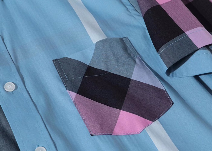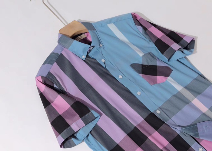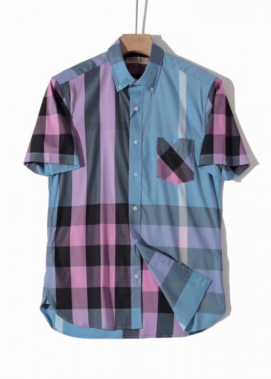 バーバリーバーバリーメンズヴィンテージベーシックコットン半袖シャツr02754.ブルー