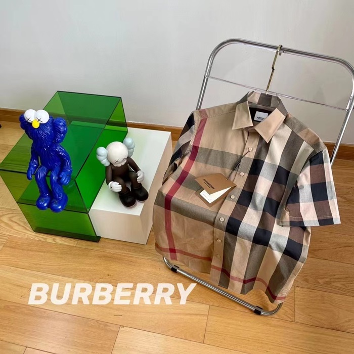 バーバリーバーバリーメンズヴィンテージベーシックコットン半袖シャツr02757.ベージュ