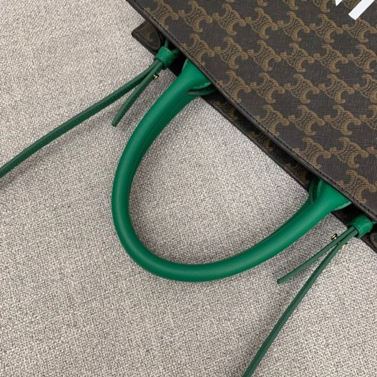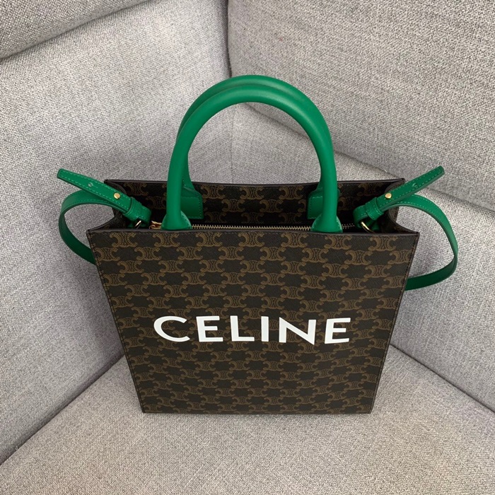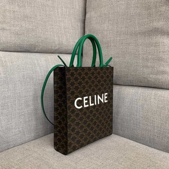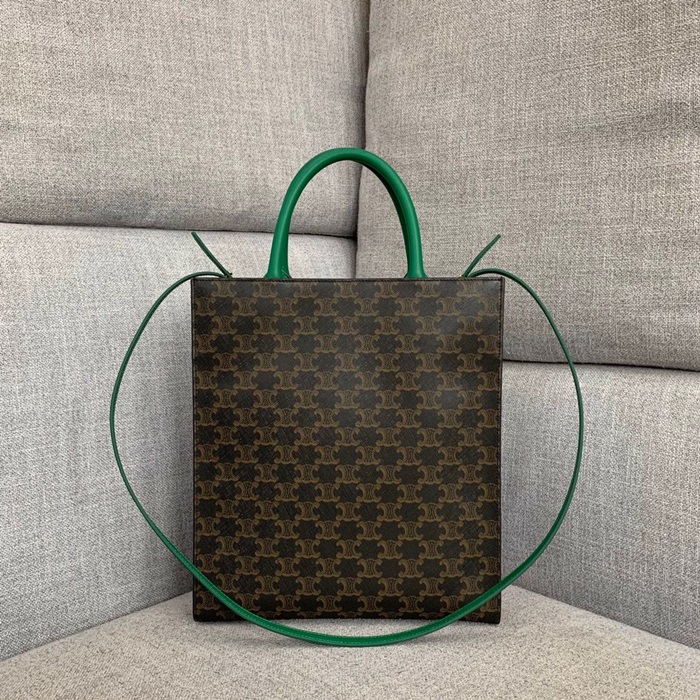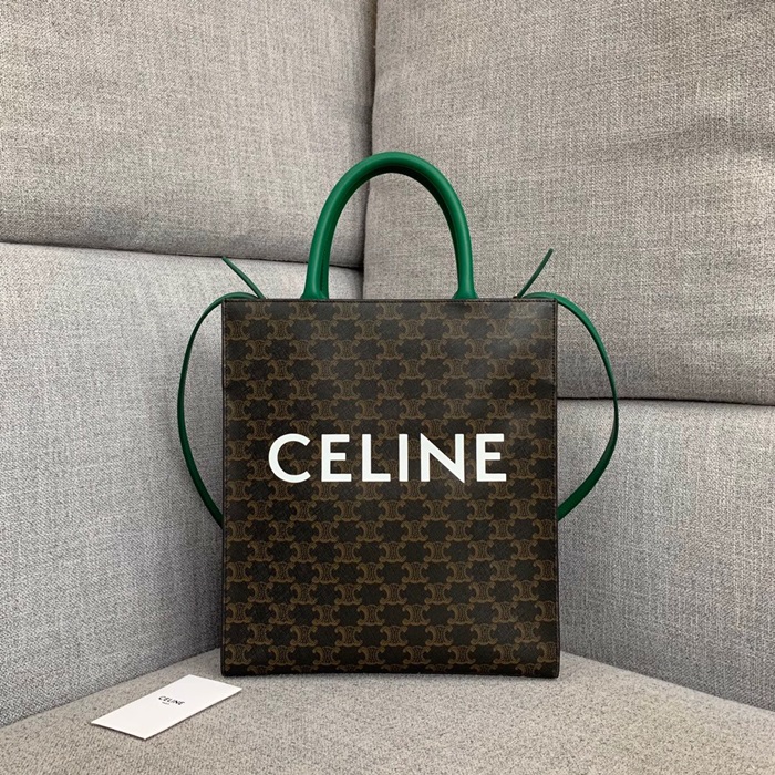 セリーヌヴァーティカルキャンバスキャンバストートバッグショッパーバッグ1542-4,32,ブラウングリーン