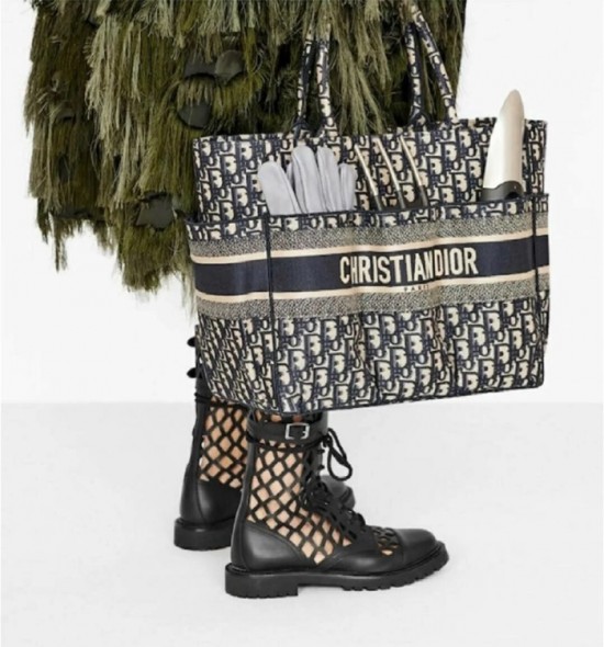 ディオールレディースキャンバスブックトートバッグショッパーバッグB0563,ネイビー