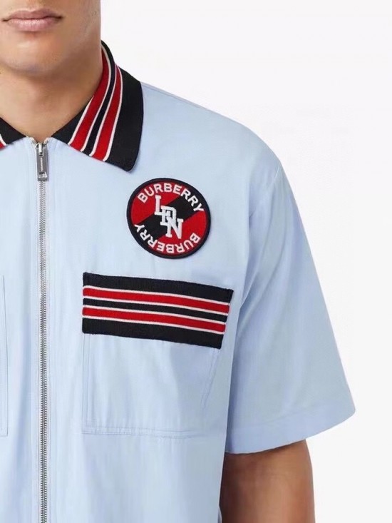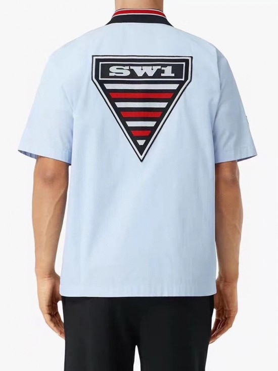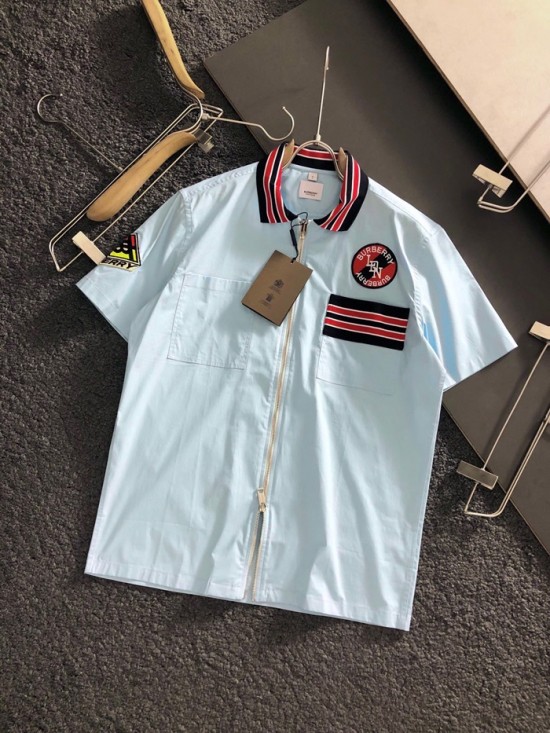 バーバリーバーバリーメンズヴィンテージベーシックコットン半袖シャツr02802ブルー