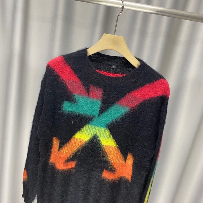 オフホワイトオフホワイトメンズブラッシュモヘアニットセーターf0473.ネイビー