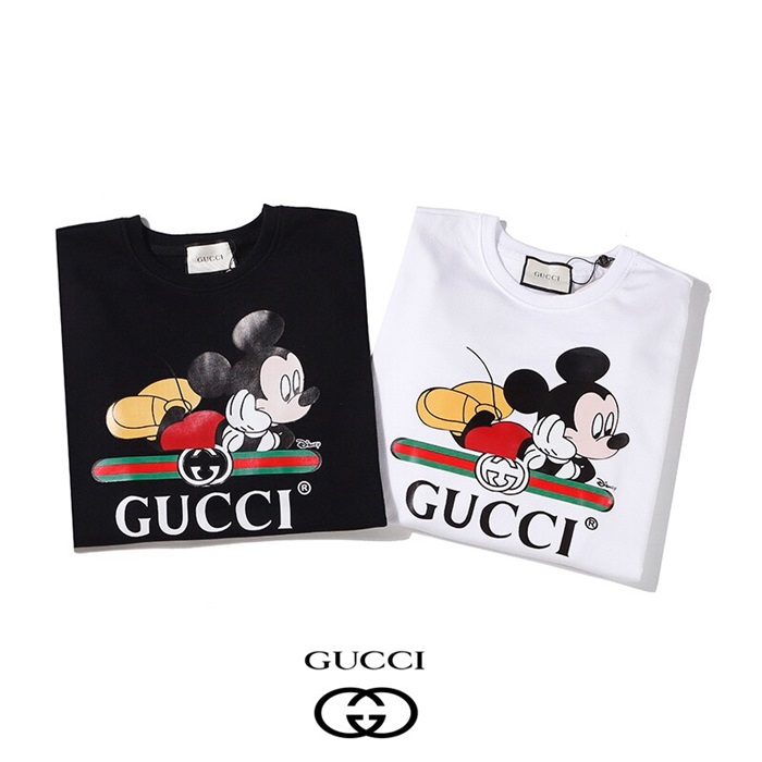 グッチ-グッチメンズコットンクルーネックオーバーサイズ長袖Tシャツc02936.2(ブラック/ホワイト)