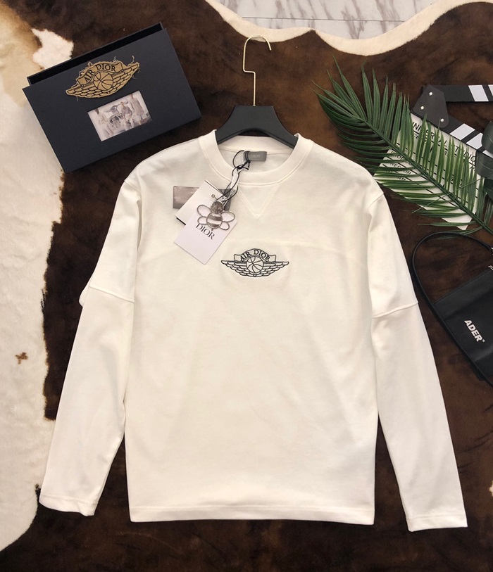ディオールディオールメンズカジュアルコットン長袖Tシャツo0763.ホワイト