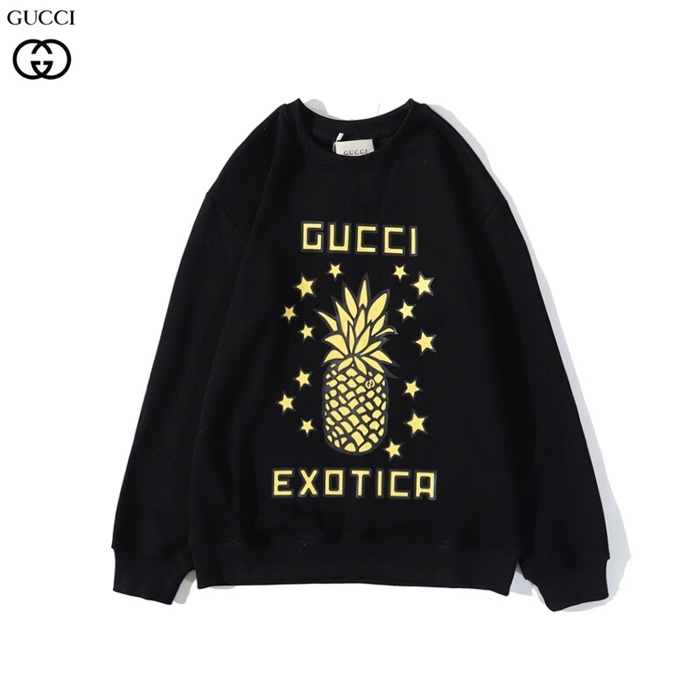 グッチ-グッチユニセックスコットンクルーネック長袖Tシャツc02980.ブラック