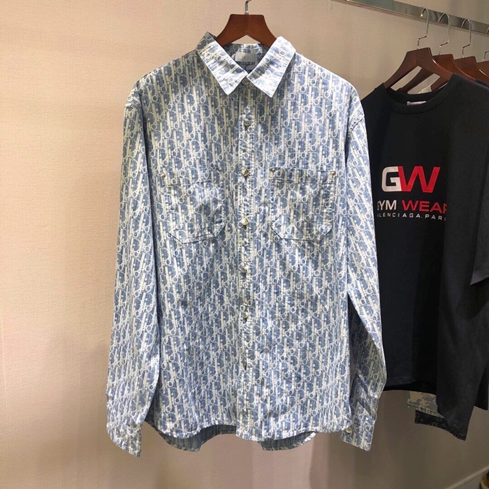 ディオールディオールユニセックスクラシックシャツo0775ブルー