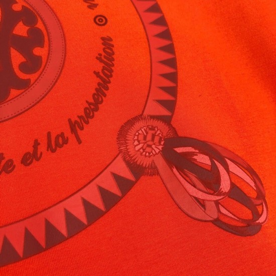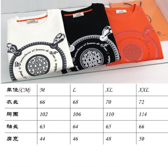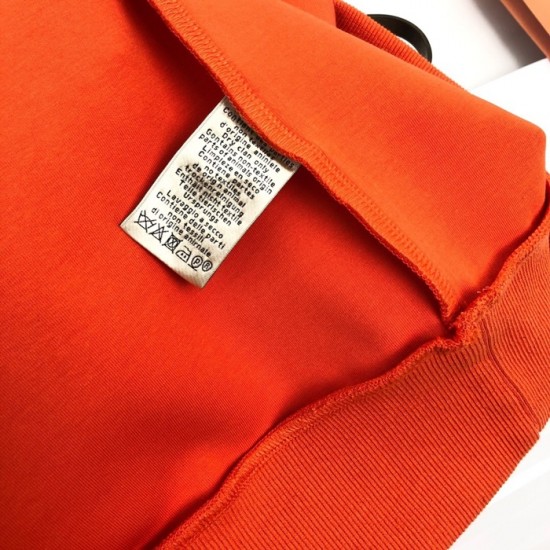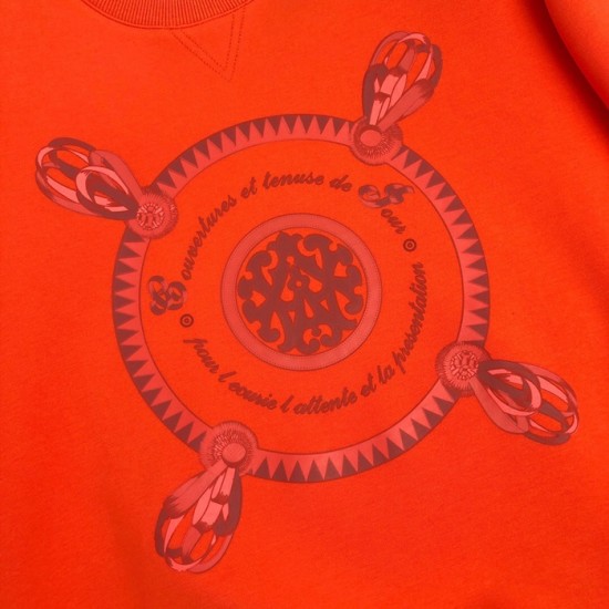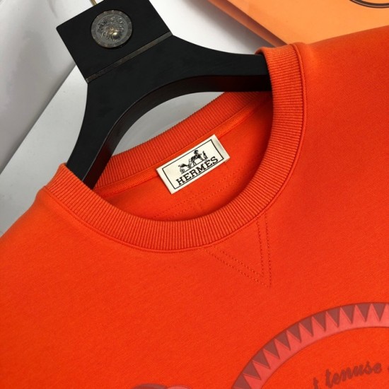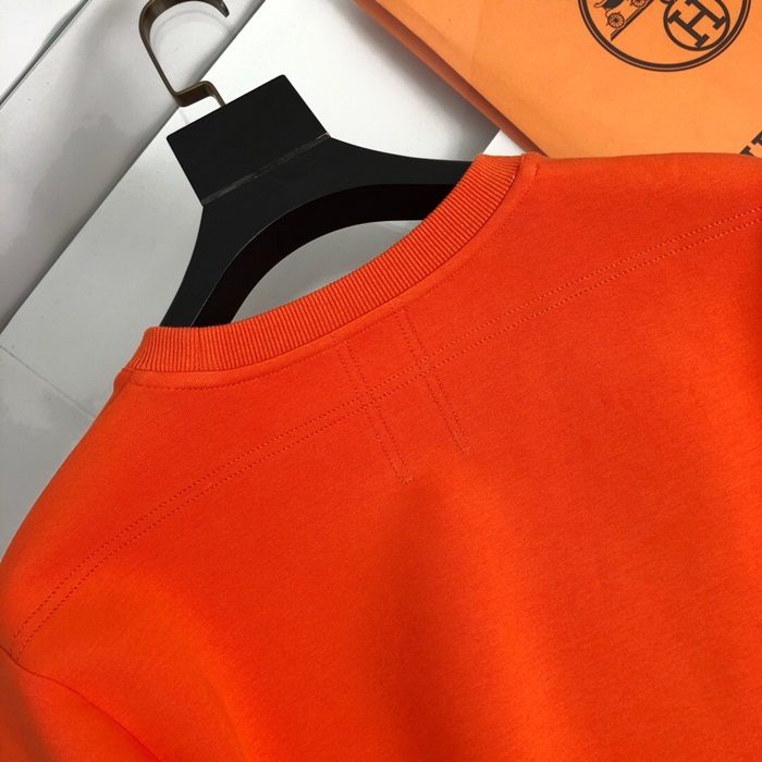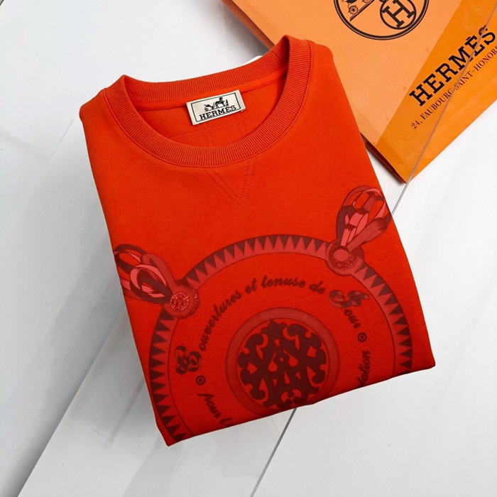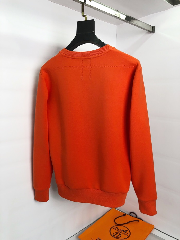 -エルメスメンズクルーネックカジュアルコットン起毛長袖Tシャツr0508.オレンジ