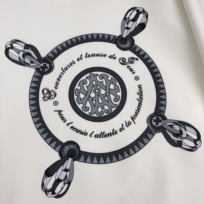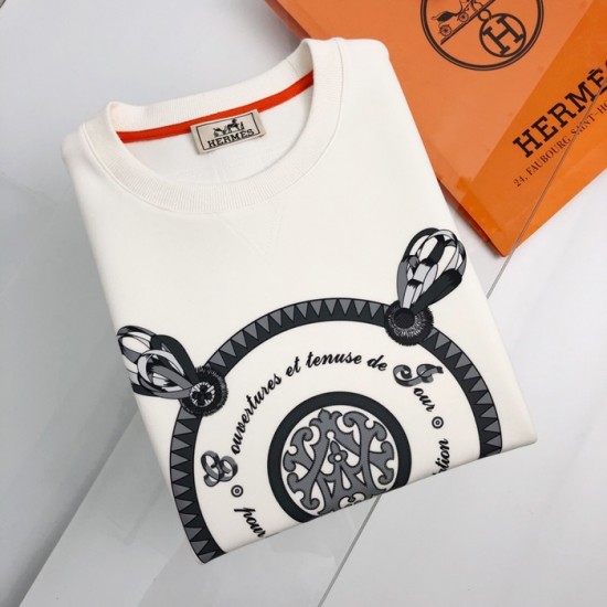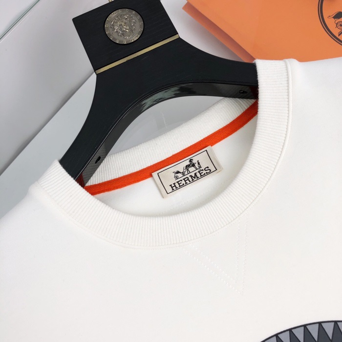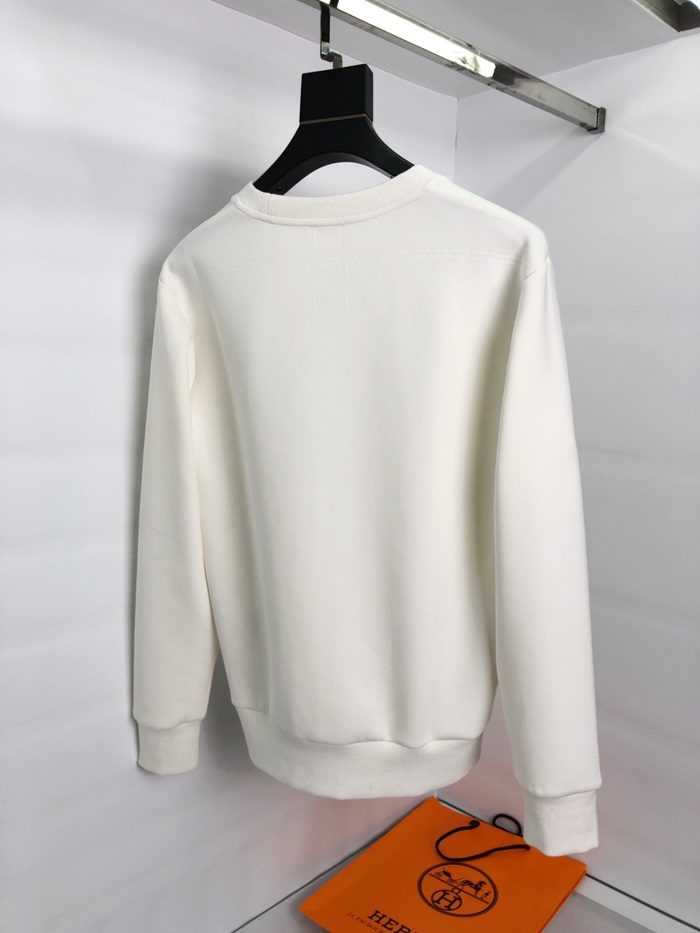 -エルメスメンズクルーネックカジュアルコットン起毛長袖Tシャツr0509.ホワイト