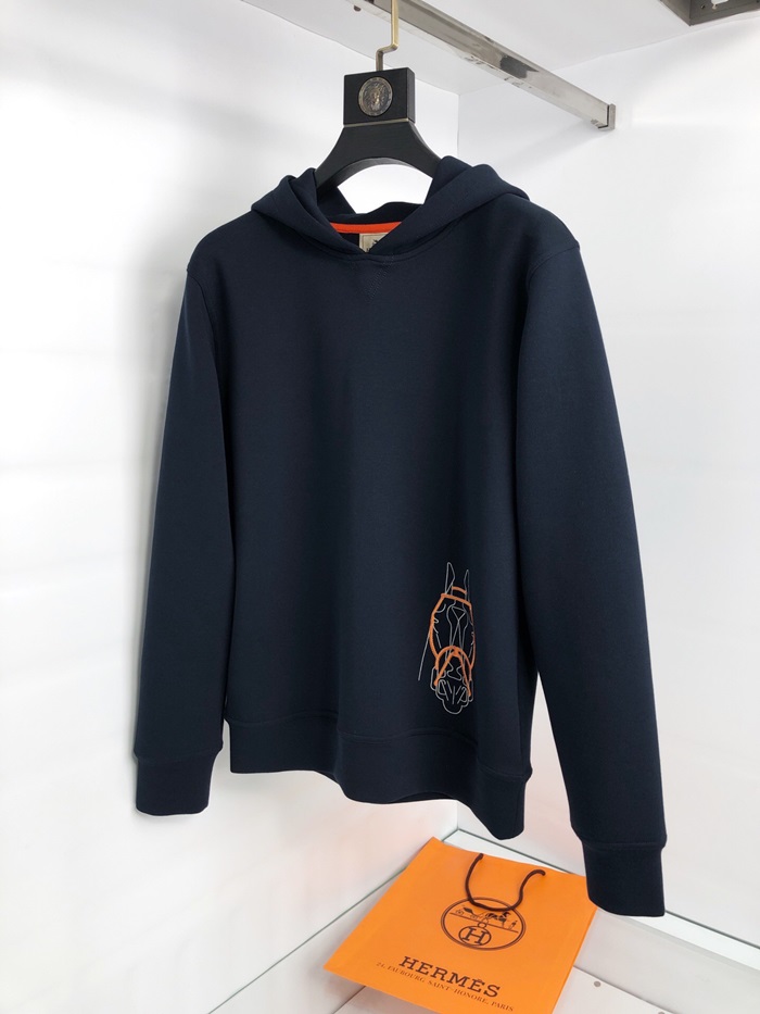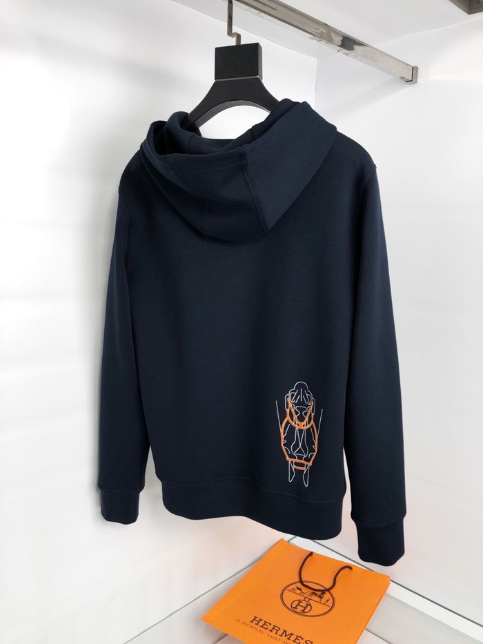 エルメスメンズカジュアルコットンフーディr0512.ネイビー