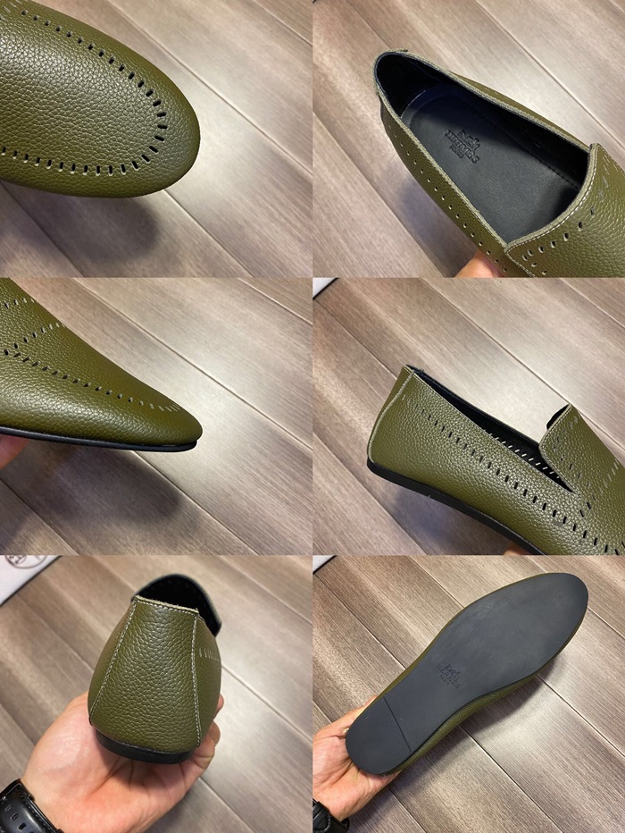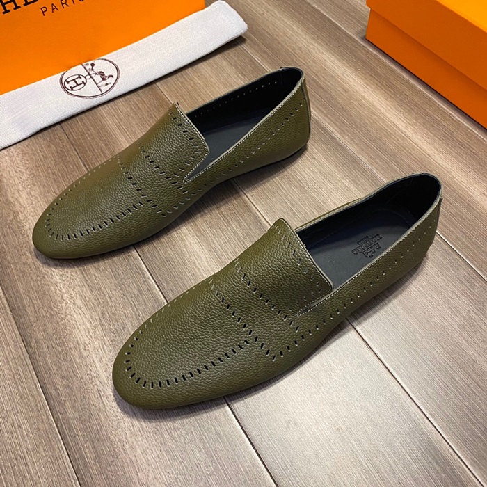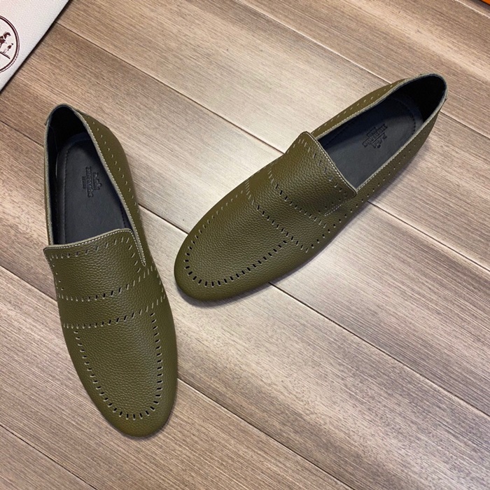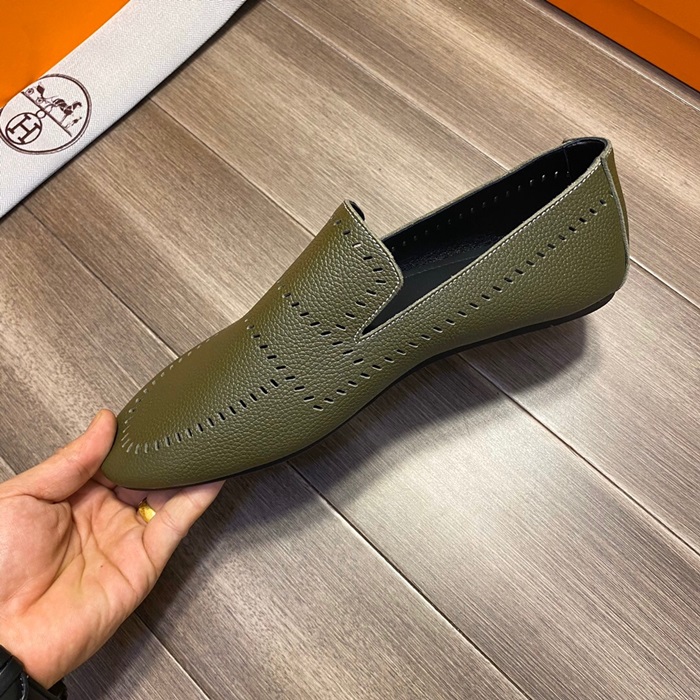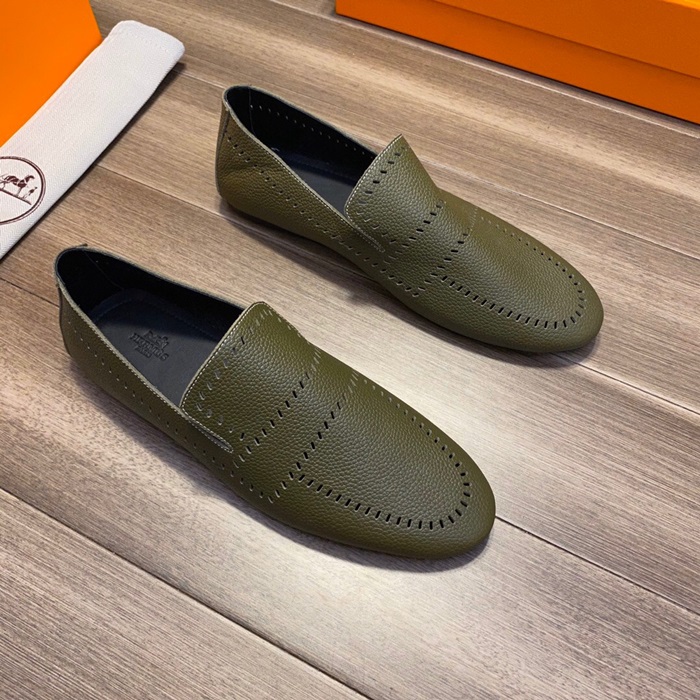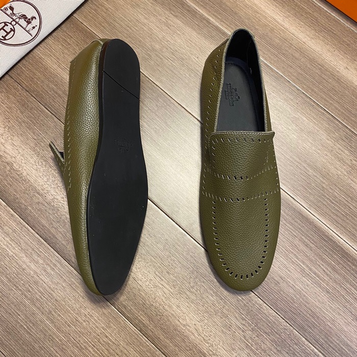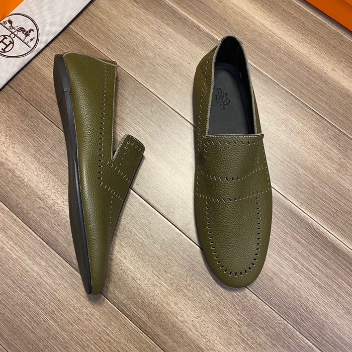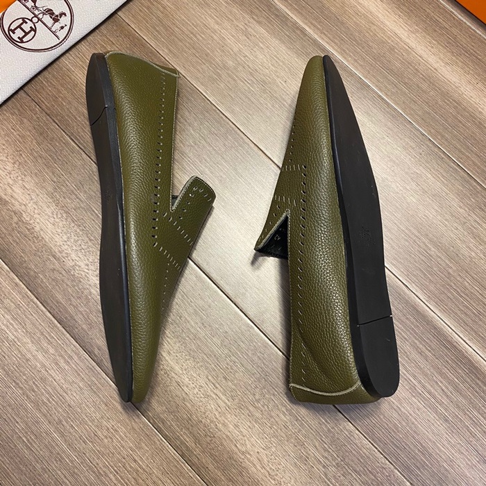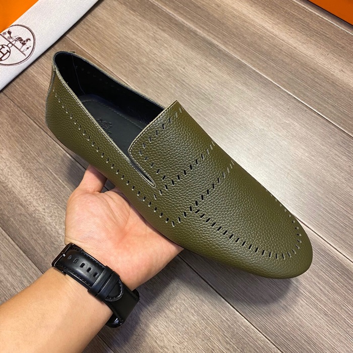 エルメスメンズレザーローファーS0332オリーブ