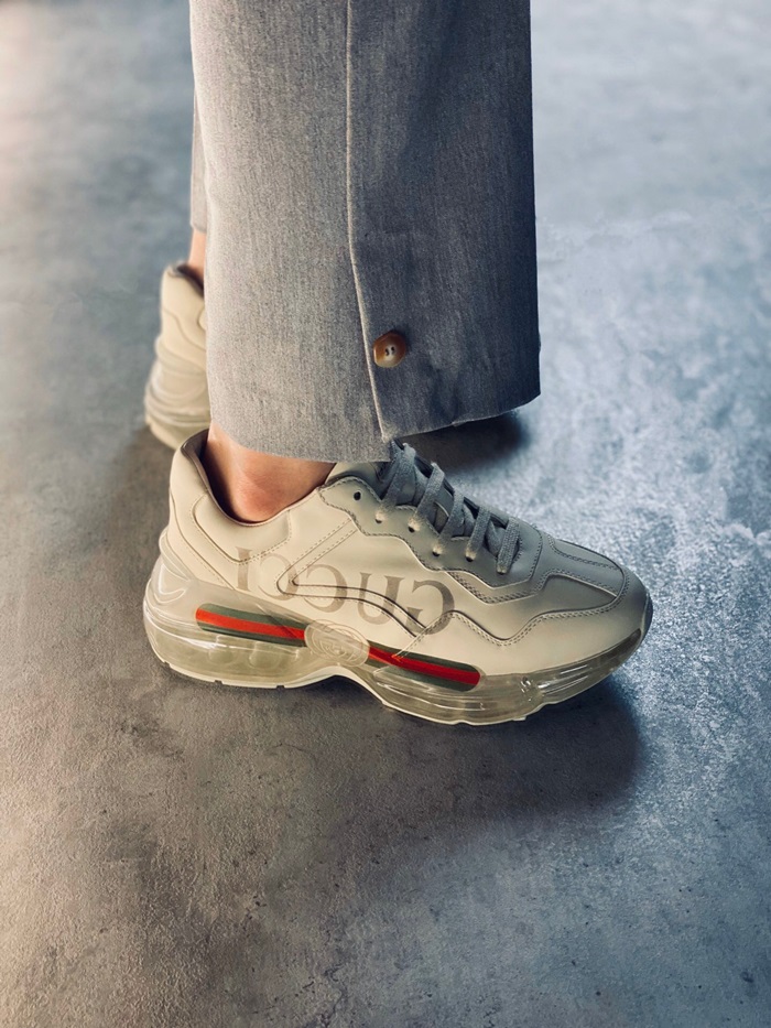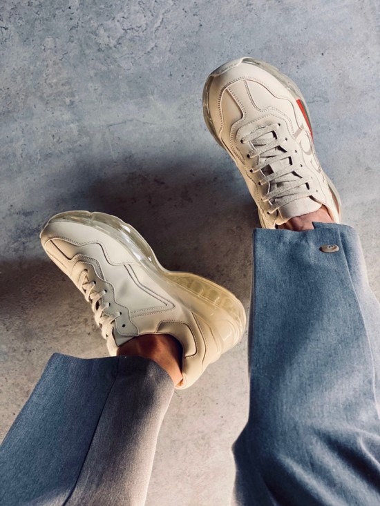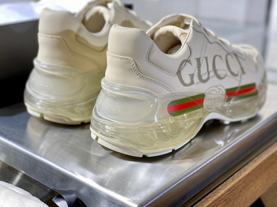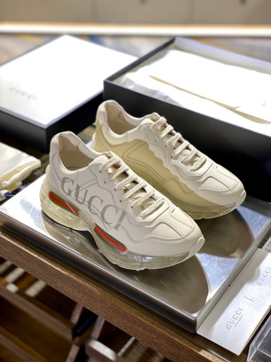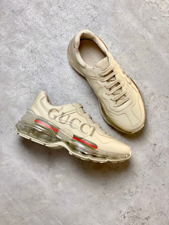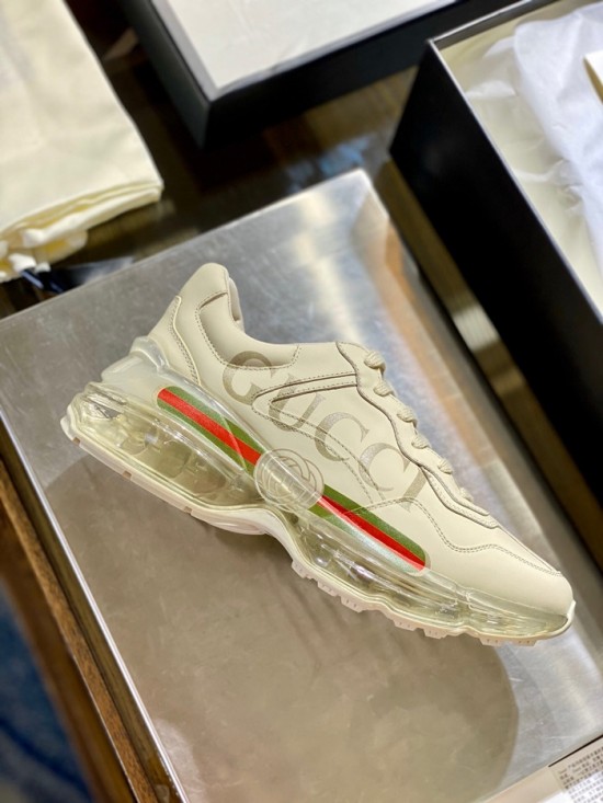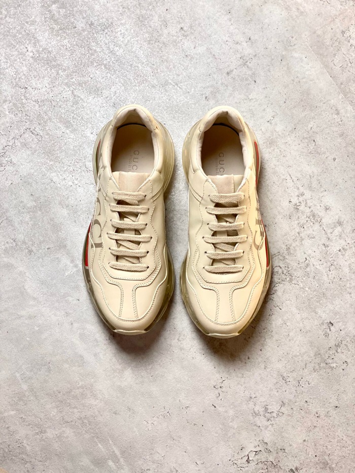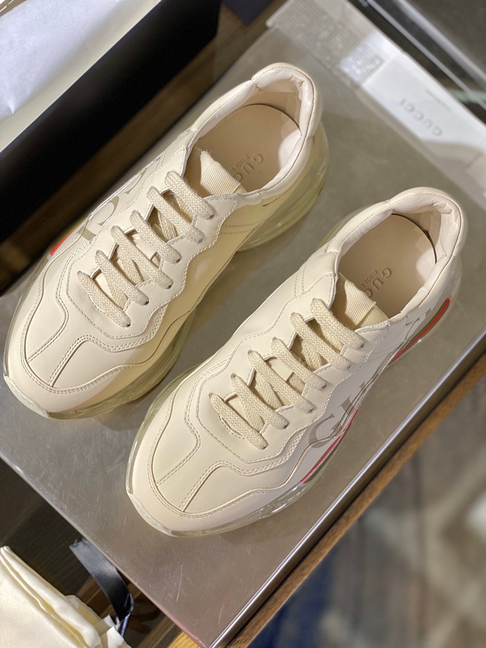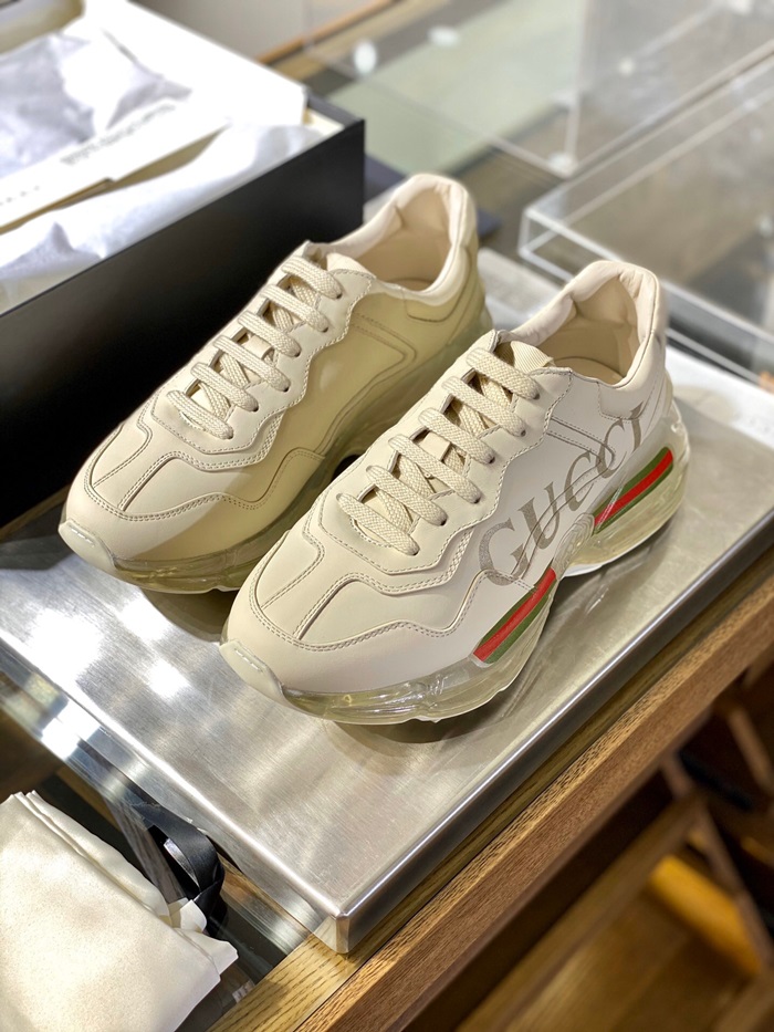 グッチユニセックスレザーランニングシューズS1185アイボリー