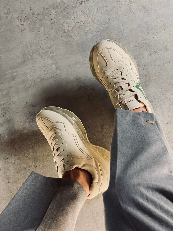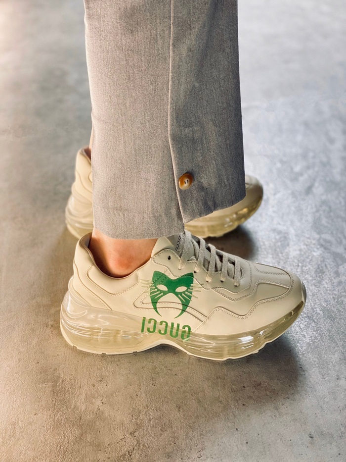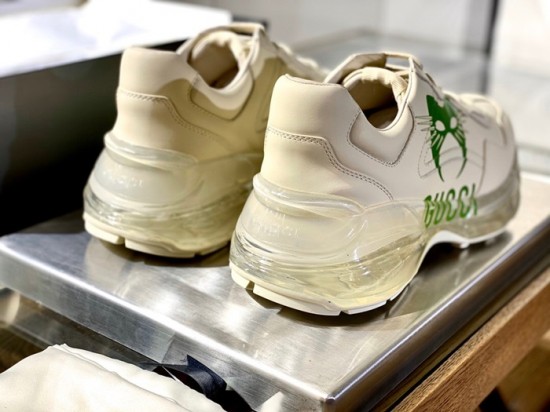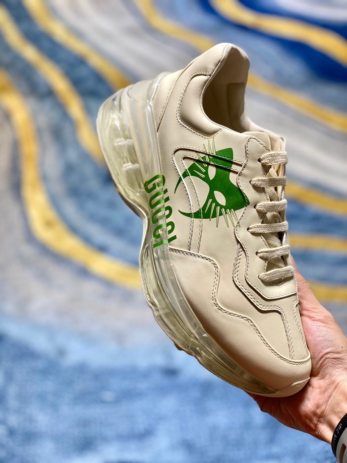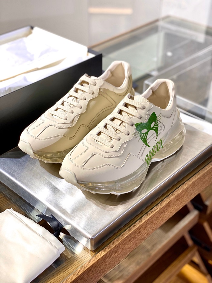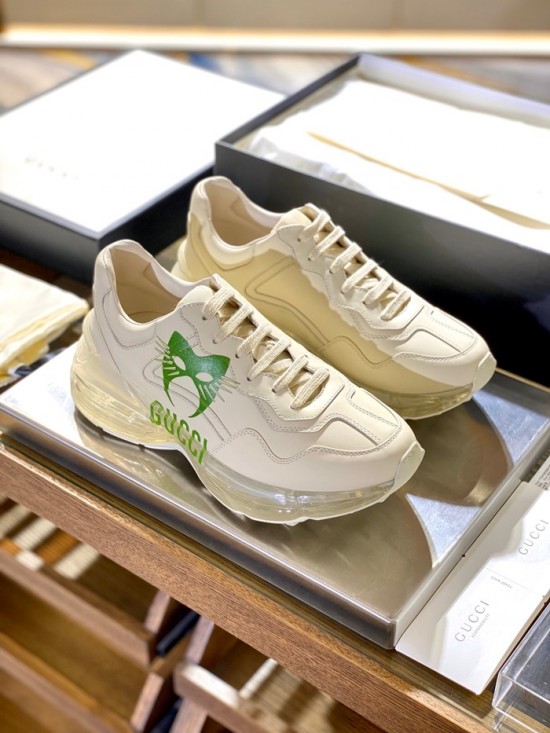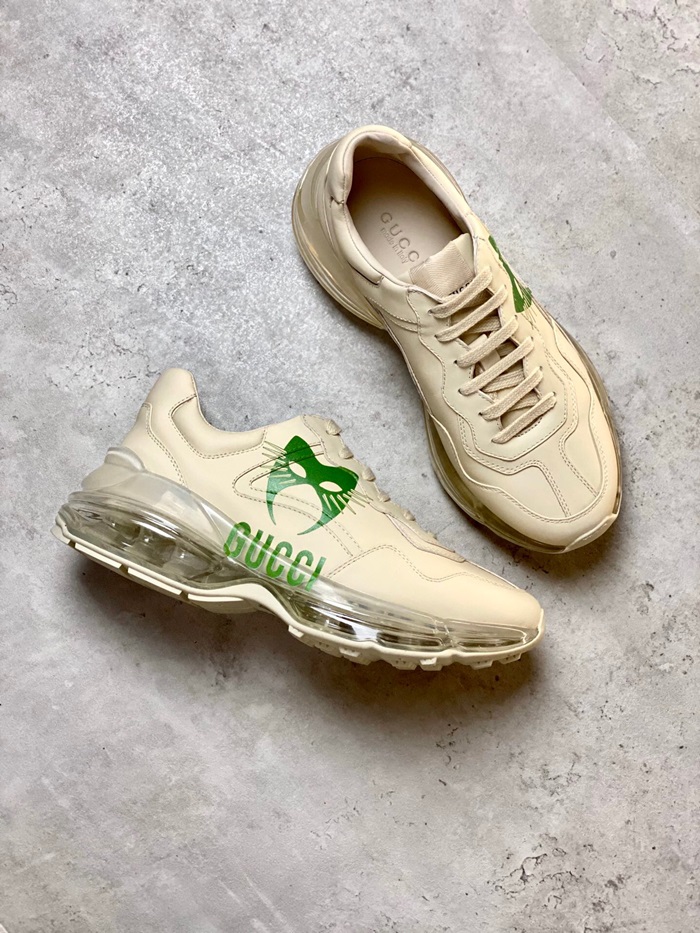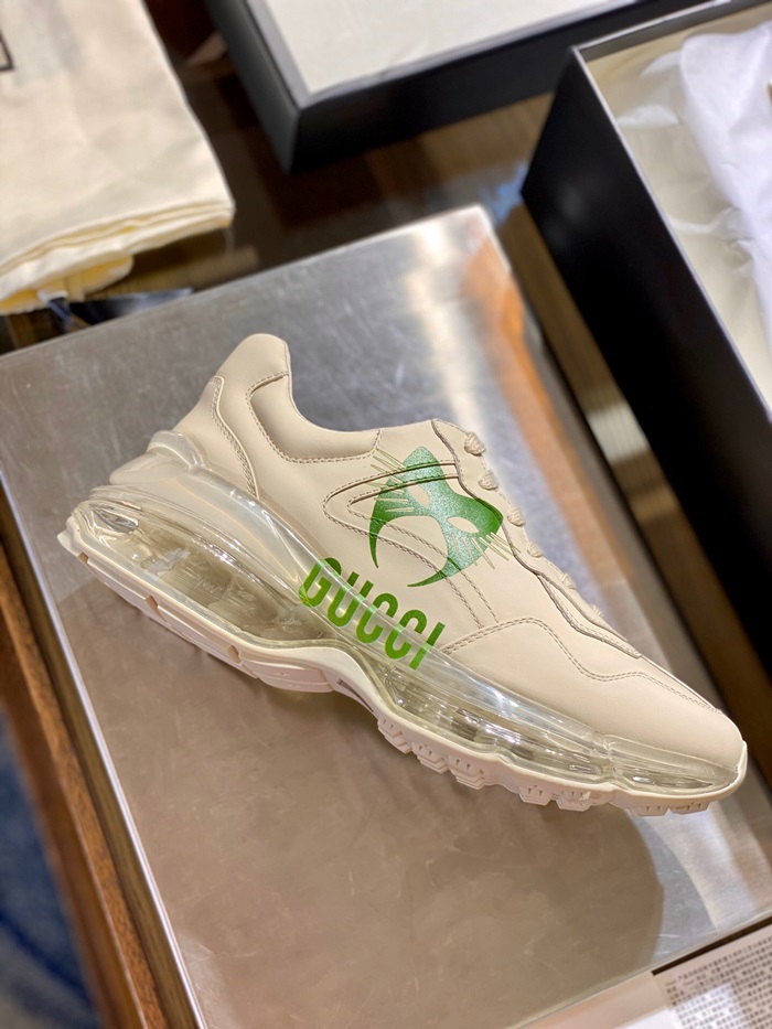 グッチユニセックスレザーランニングシューズS1189アイボリー