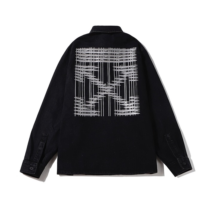 オフホワイトオフホワイトメンズカジュアルデニムシャツf0528ブラック